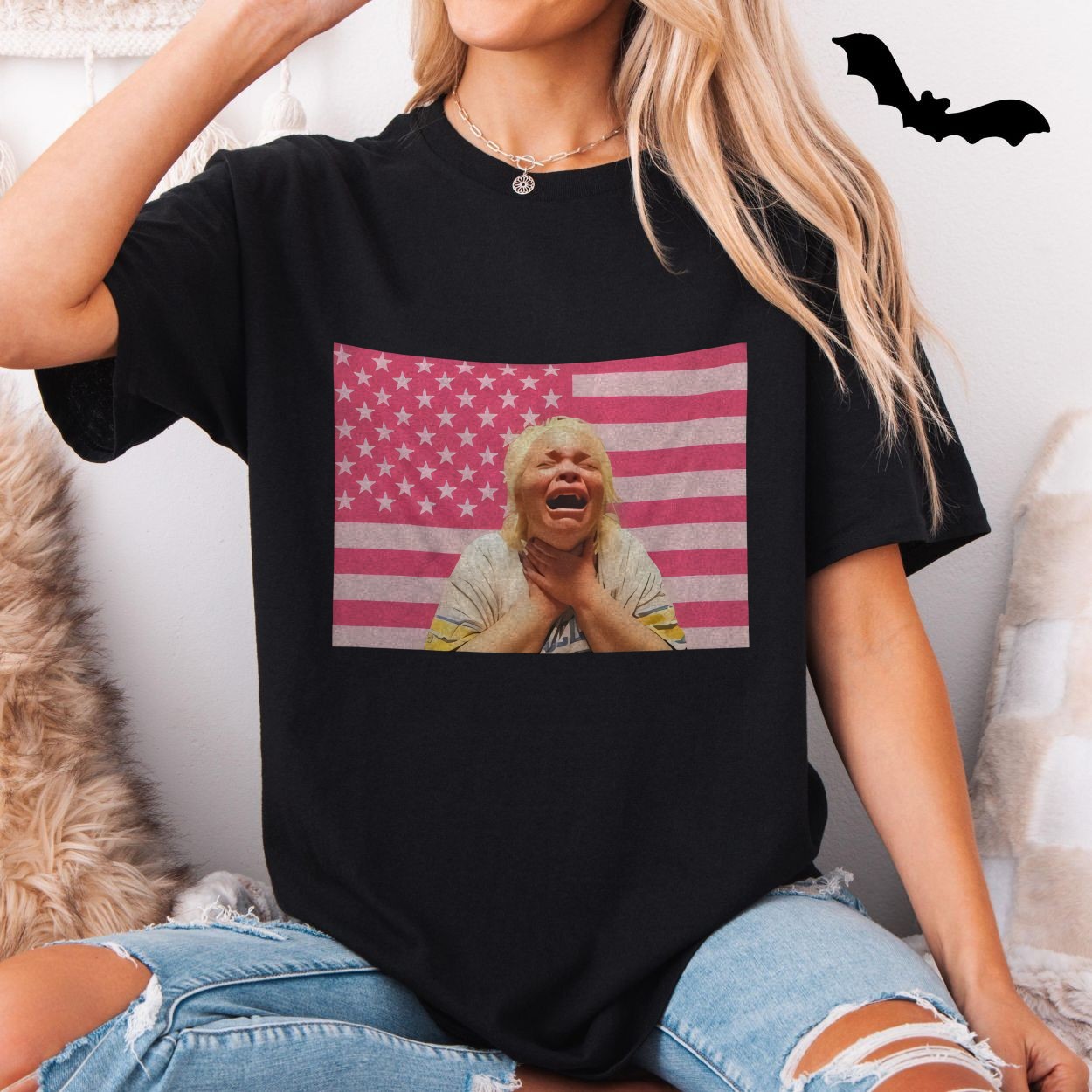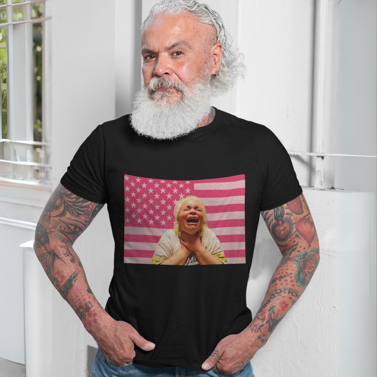 America in Distress Crying Screaming USA Flag Graphic T-Shirt