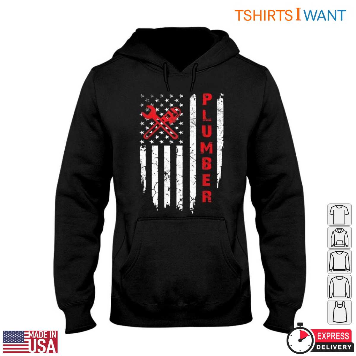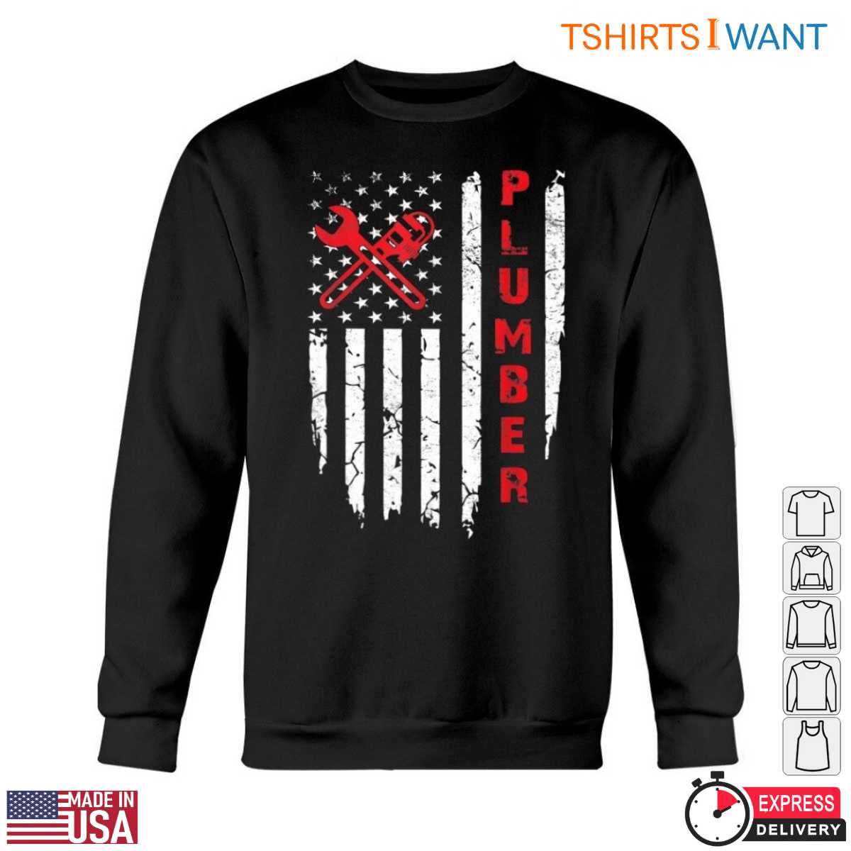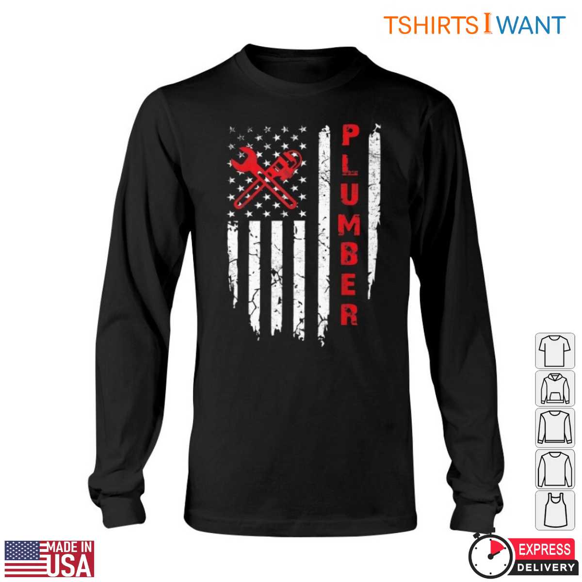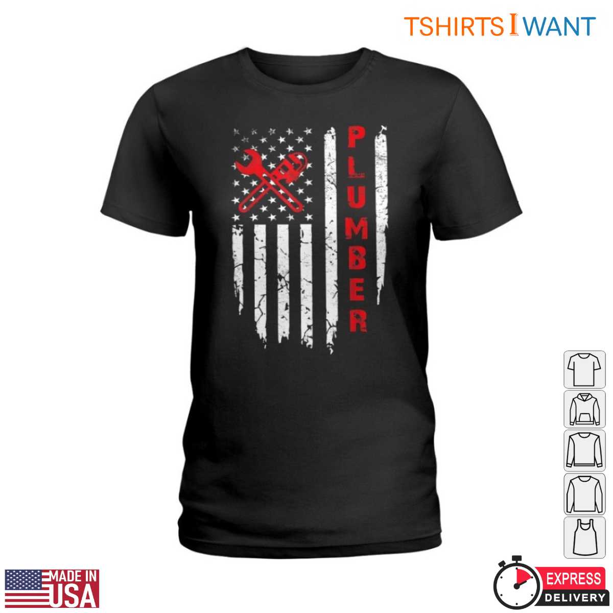 American Plumbing T-Shirt: Plumber Wrench & Flag Design