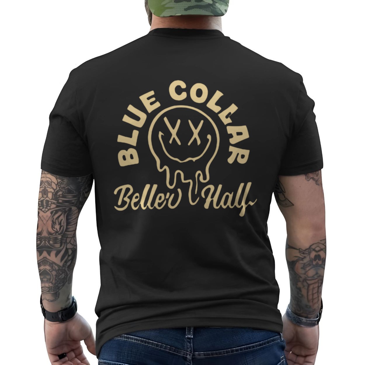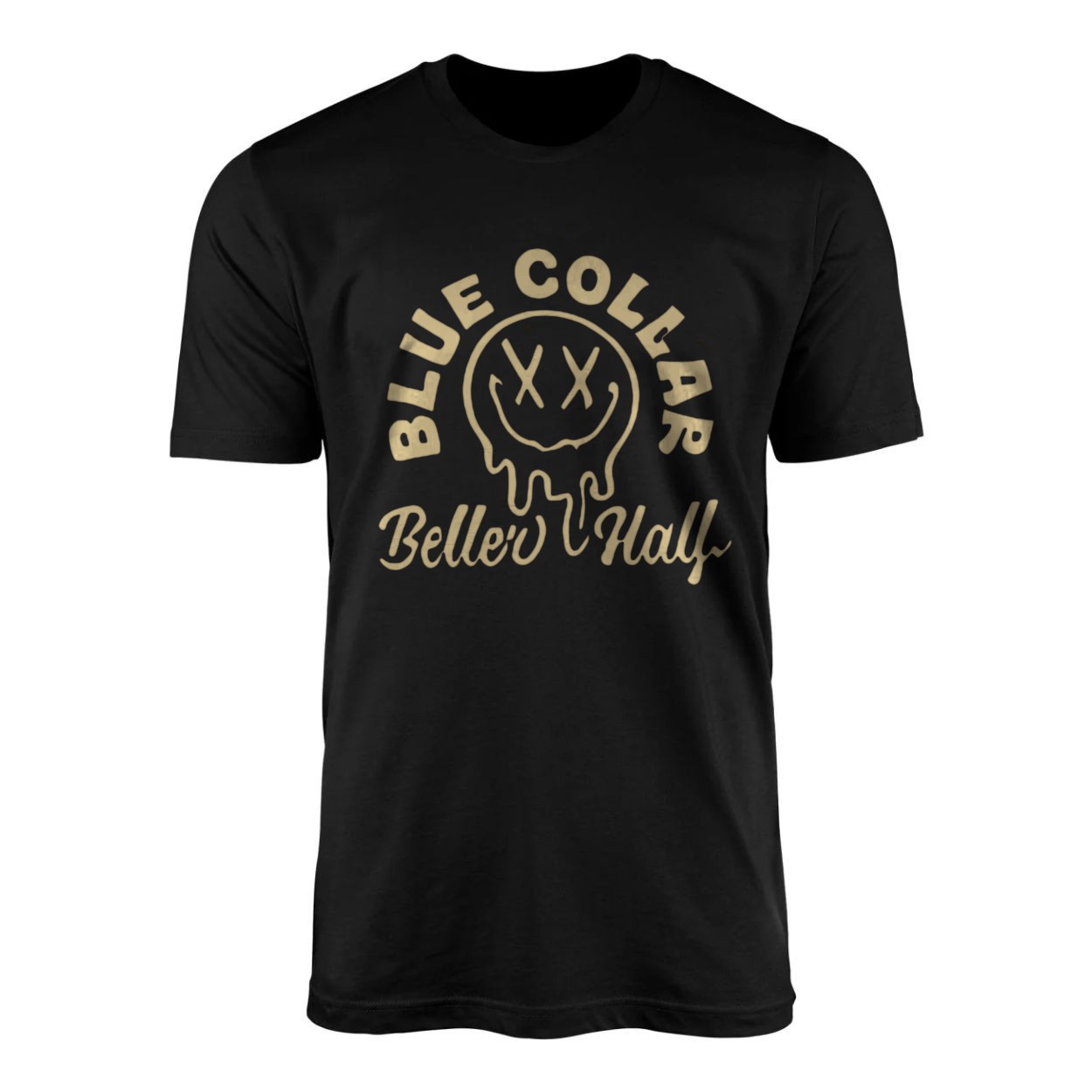 Blue Collar Belle’s Half Drip Smiley T-Shirt – Retro Graphic Tee, Unisex Black Shirt