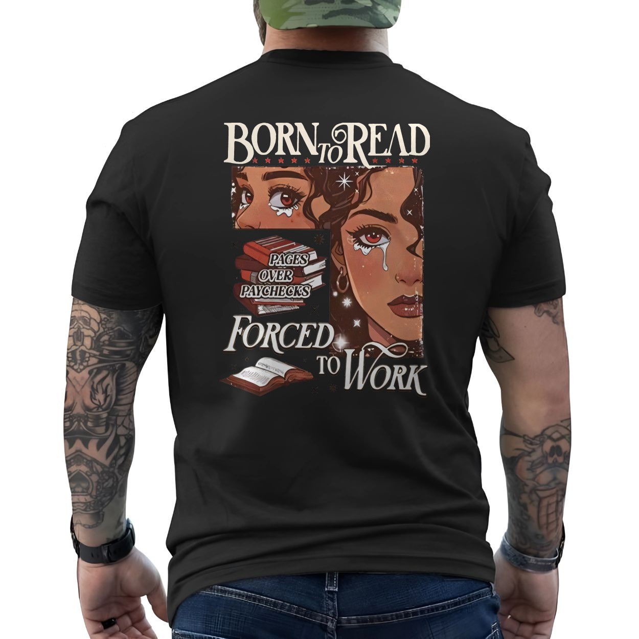 Born to Read Forced to Work Retro Bookworm Graphic T-Shirt