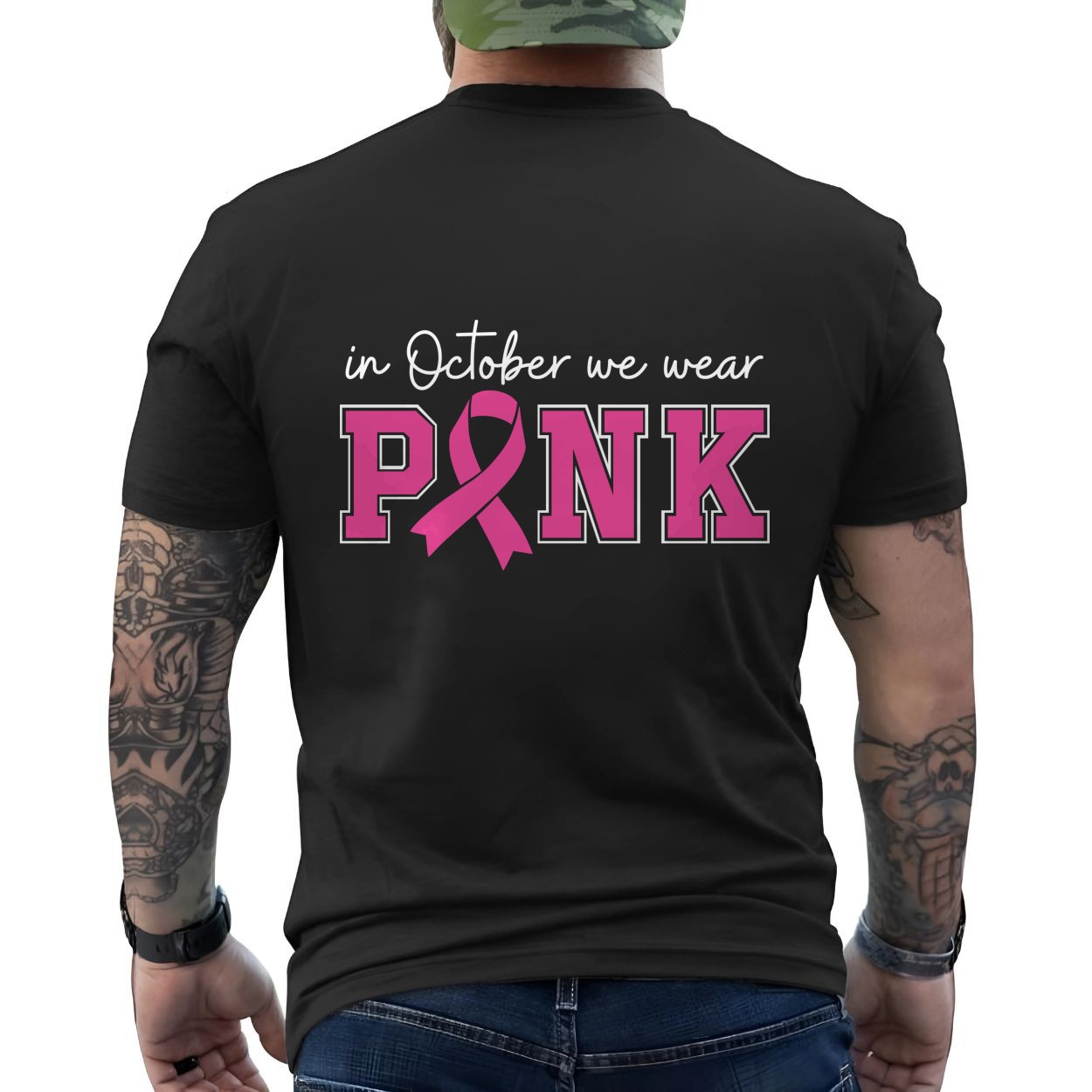 Breast Cancer Awareness T-shirt – In October We Wear Pink Ribbon Graphic Tee