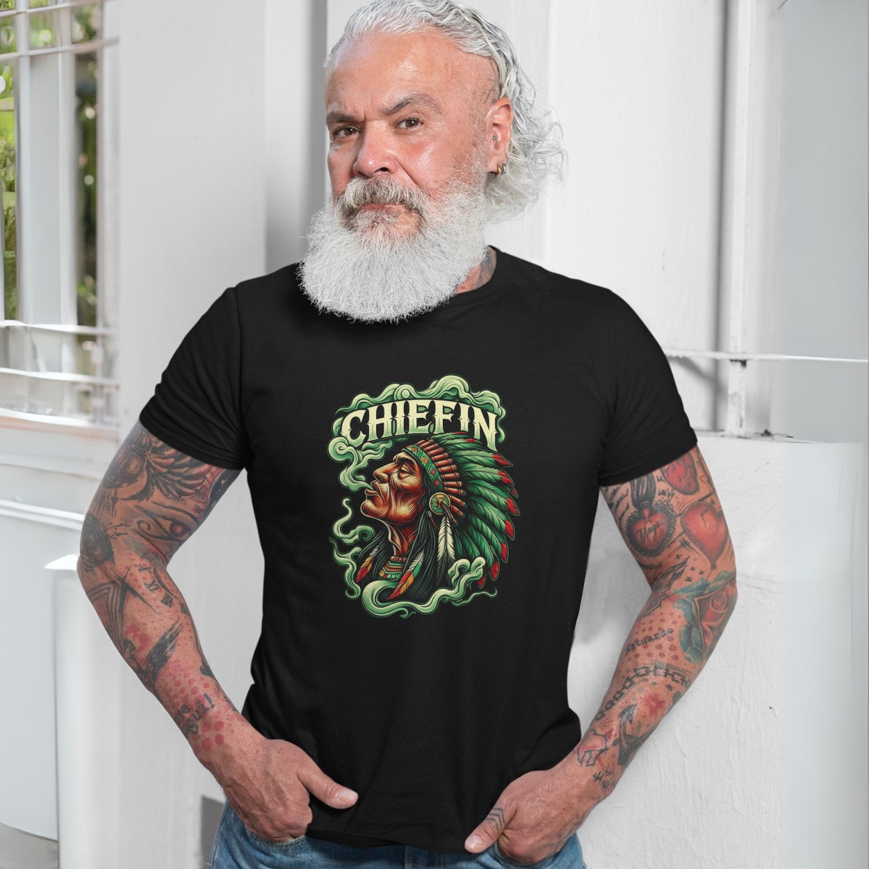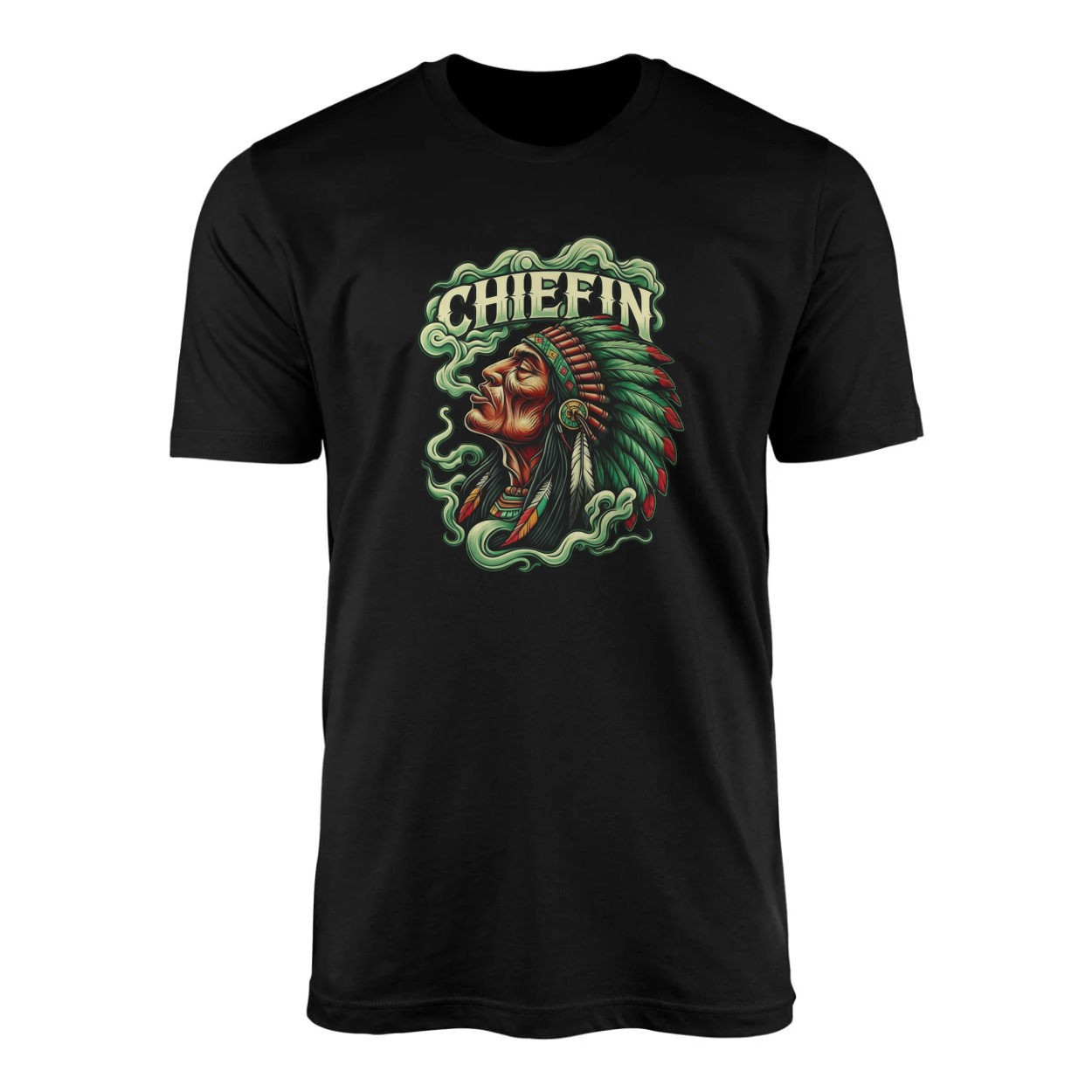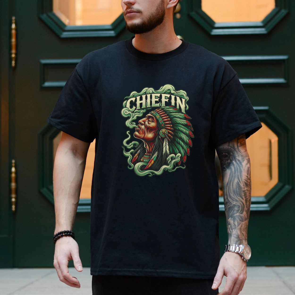 Chiefin Native American Headdress Smoke Art T-Shirt