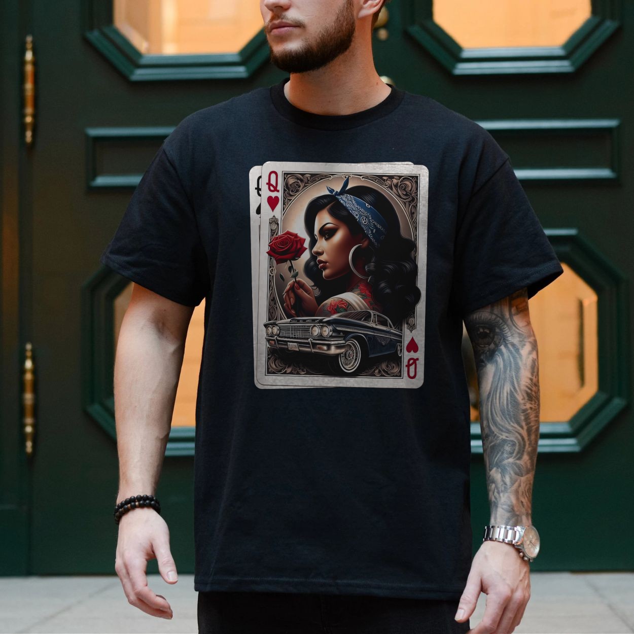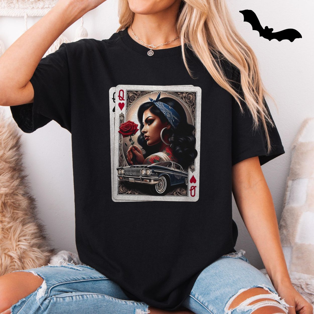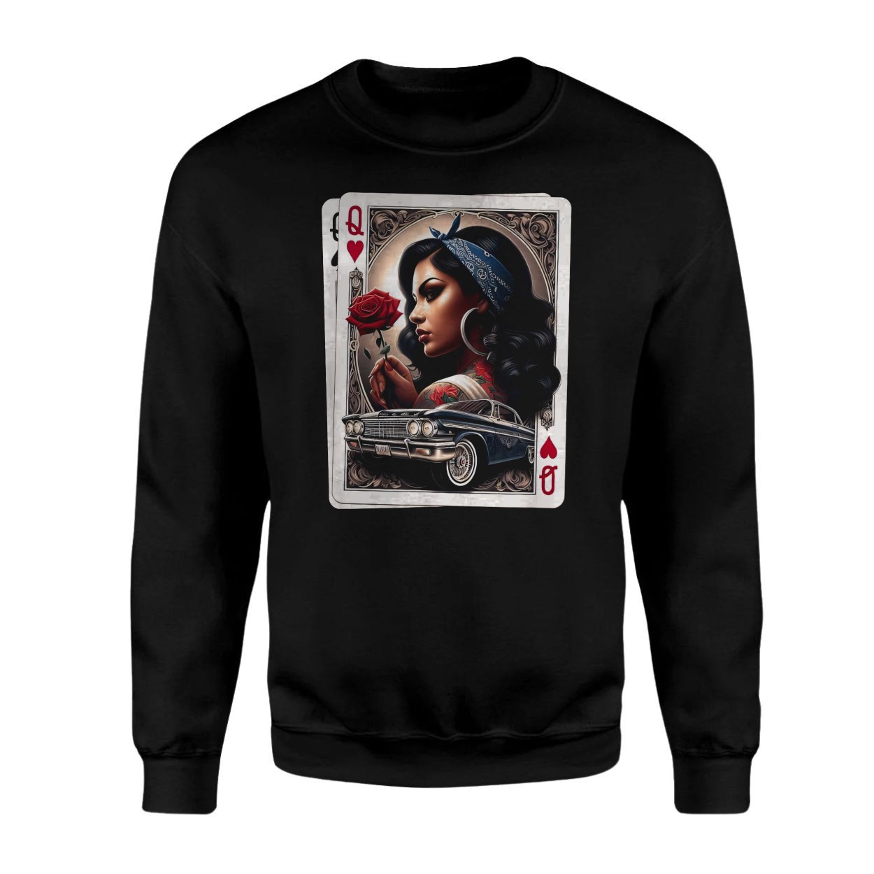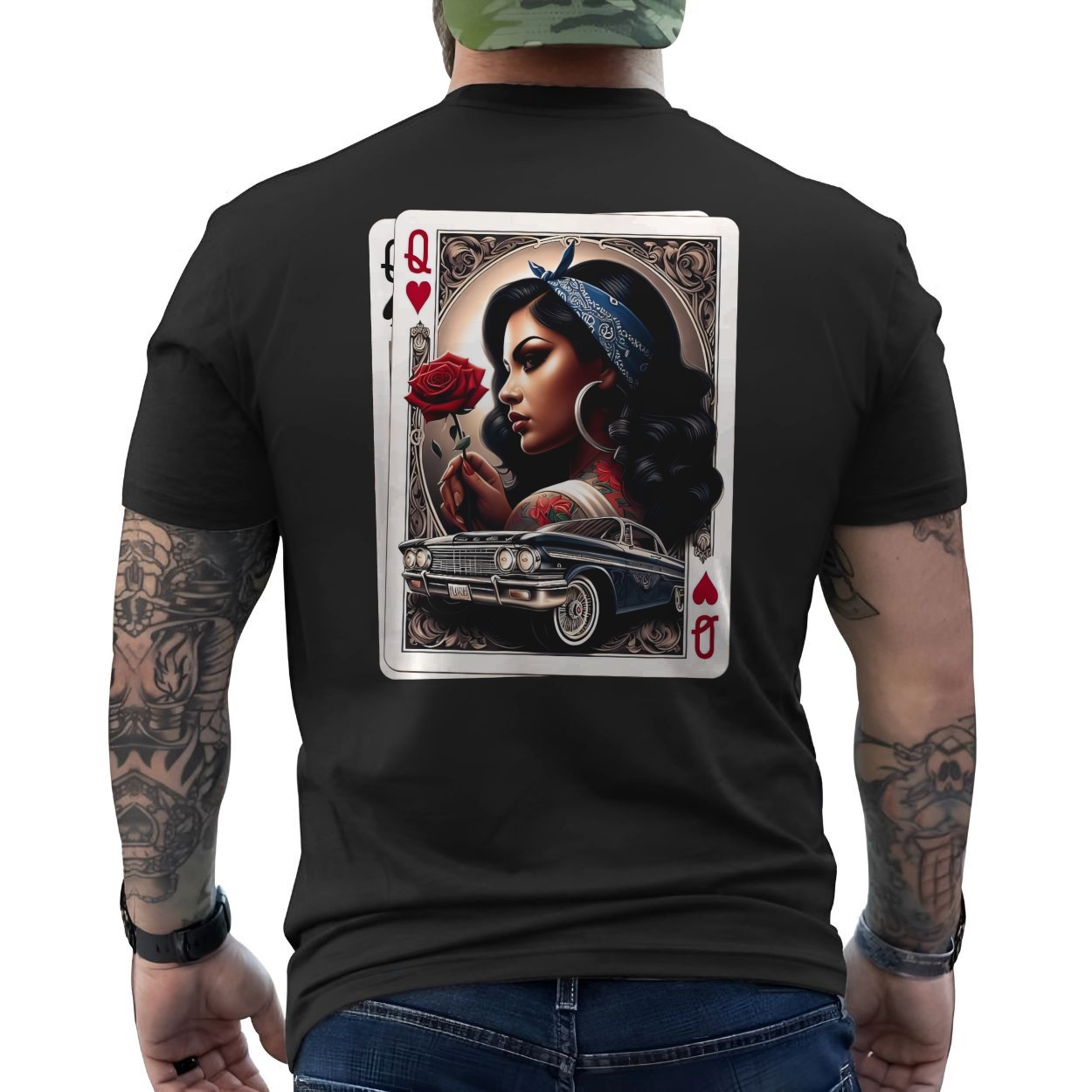 Chola Queen of Hearts T-Shirt Latina Lowrider Chicano Art Gift