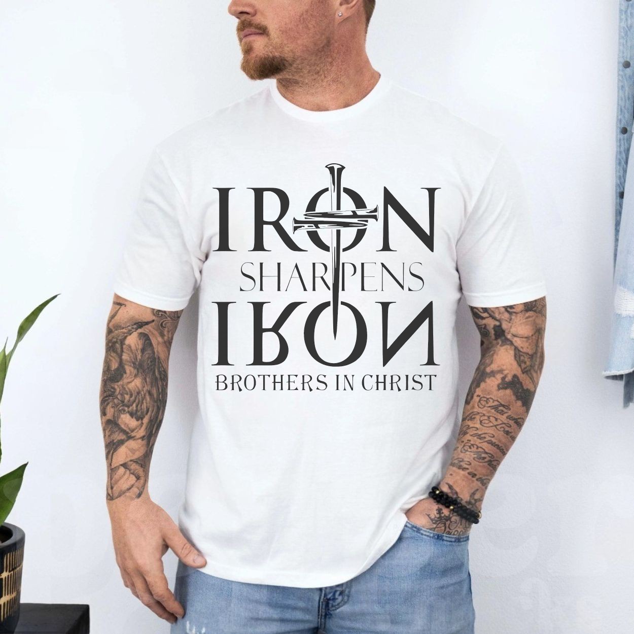 Christian Men’s T-Shirt – Iron Sharpens Iron Brothers in Christ Tee