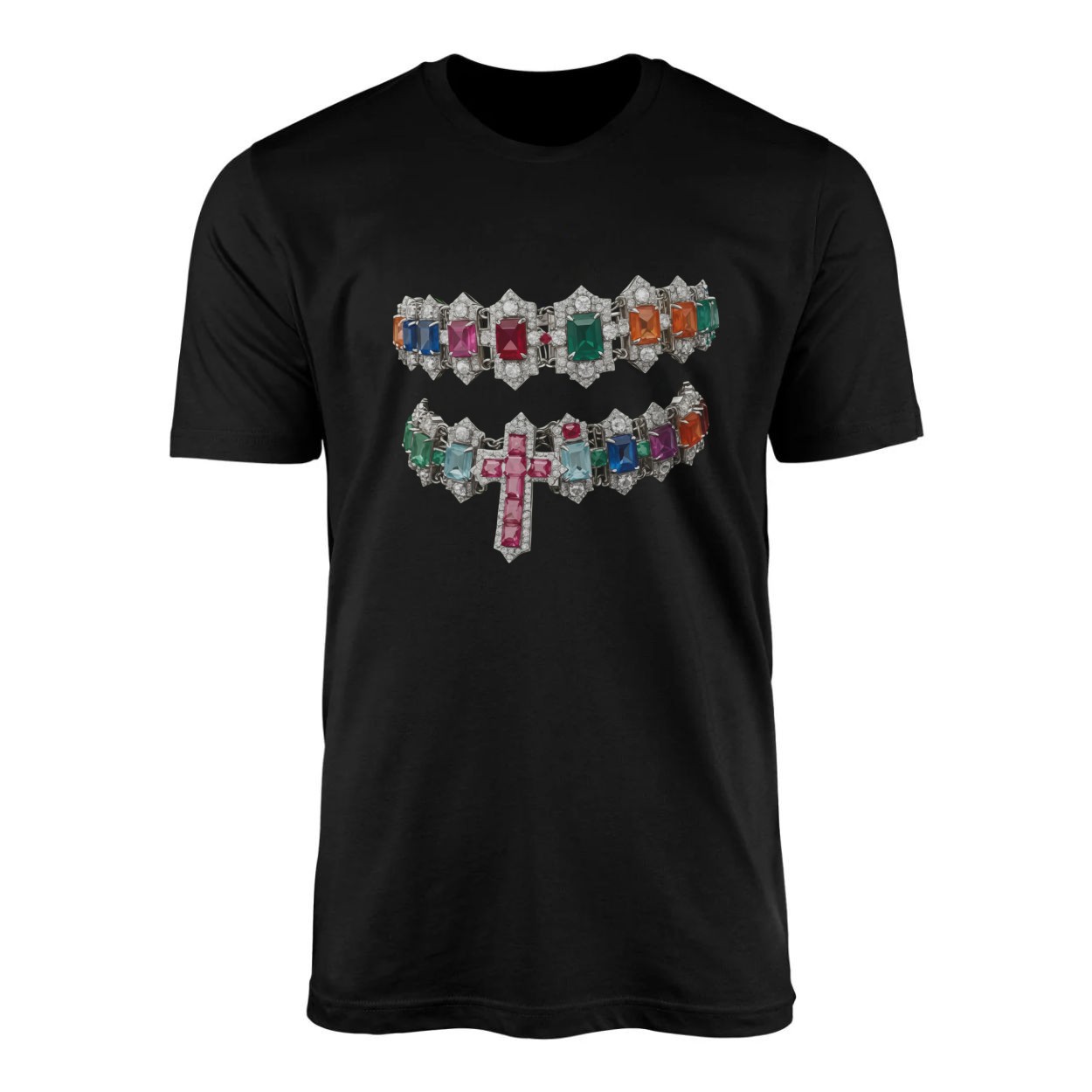 Colorful Gemstone Cross Graphic Streetwear T-Shirt