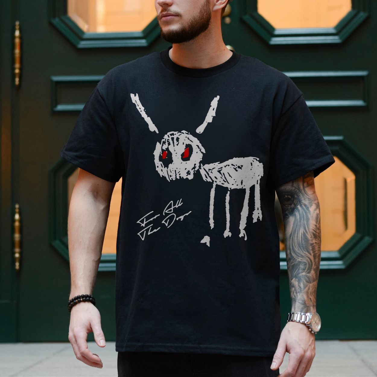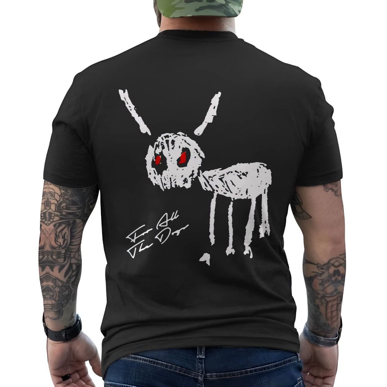 Creepy Skeleton Dog Red Eyes Horror Art T-Shirt