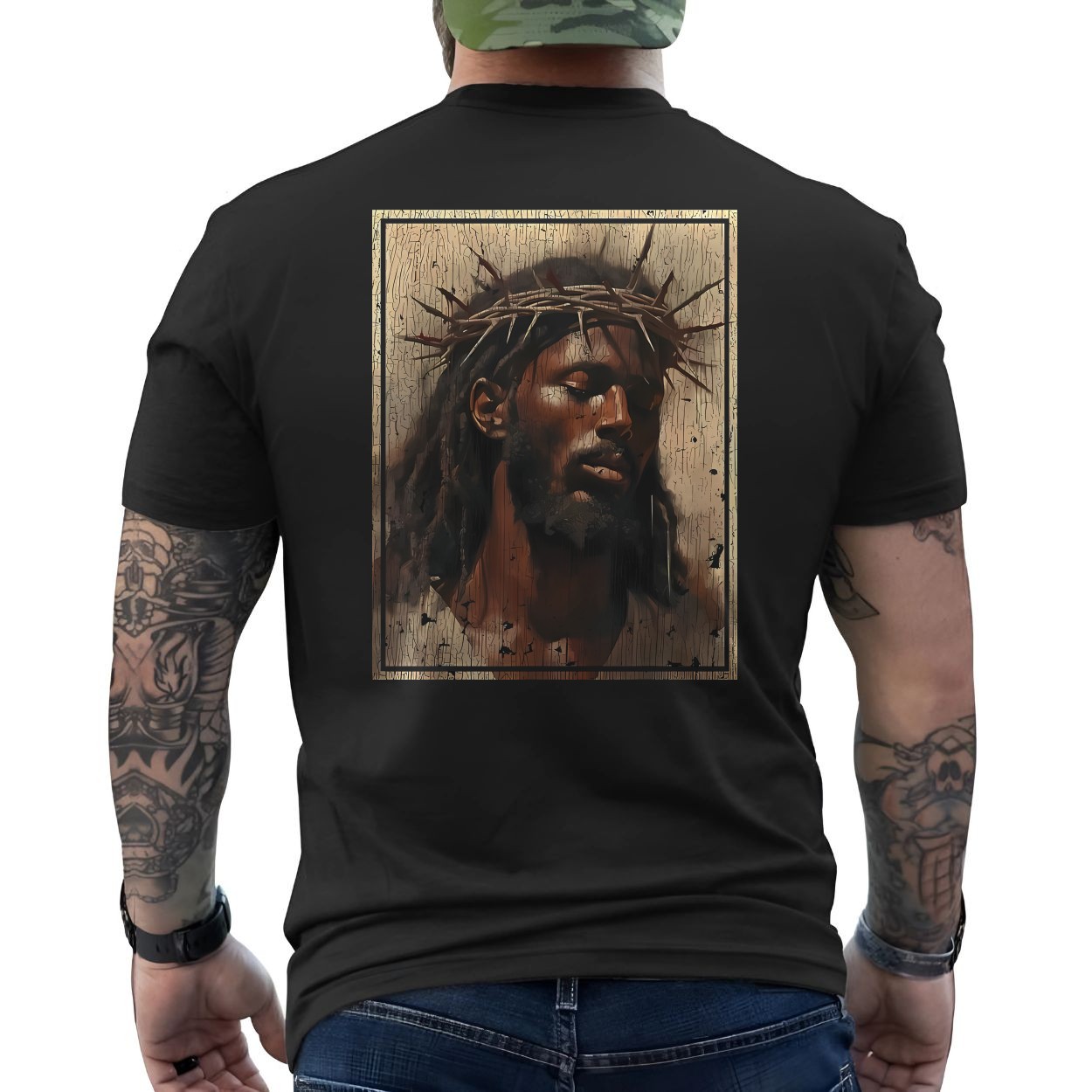 Crowned Jesus T-Shirt – Rustic Christian Art with Thorn Crown