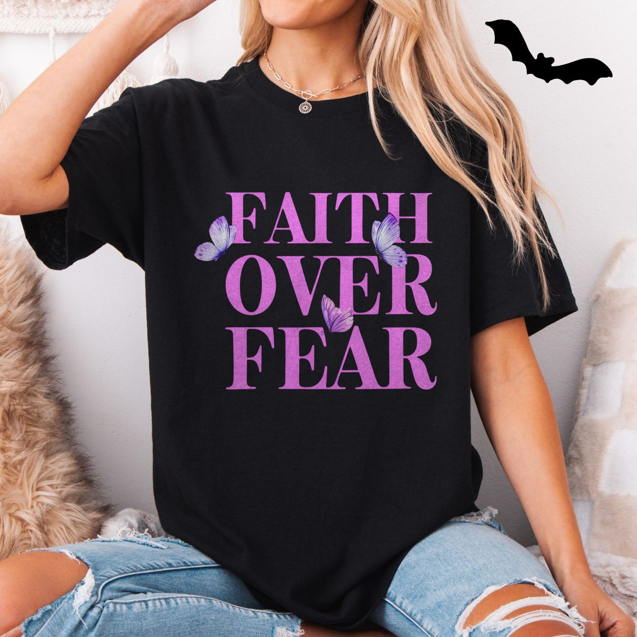 Cute Christian T-Shirt Faith Over Fear Butterfly Aesthetic Tee