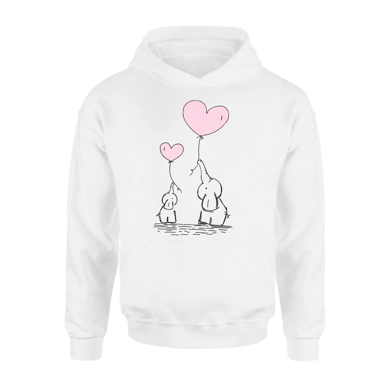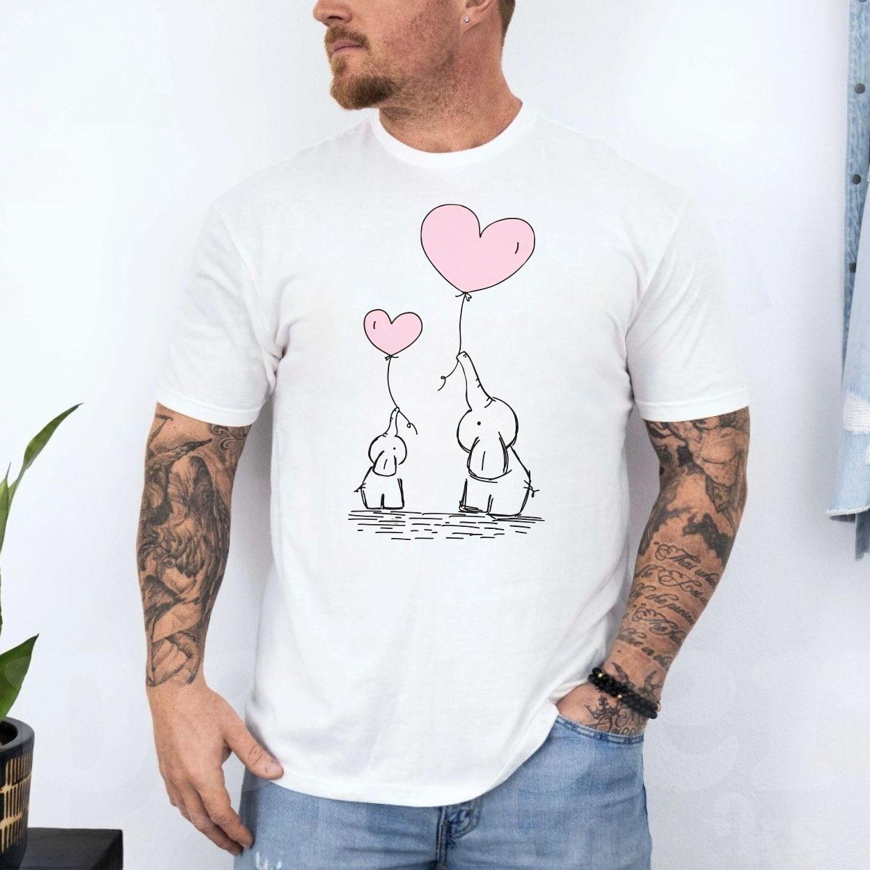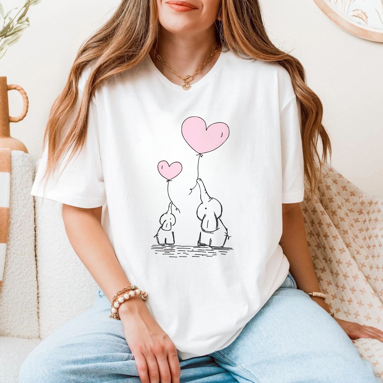 Cute Elephant Mom and Baby with Heart Balloons T-Shirt