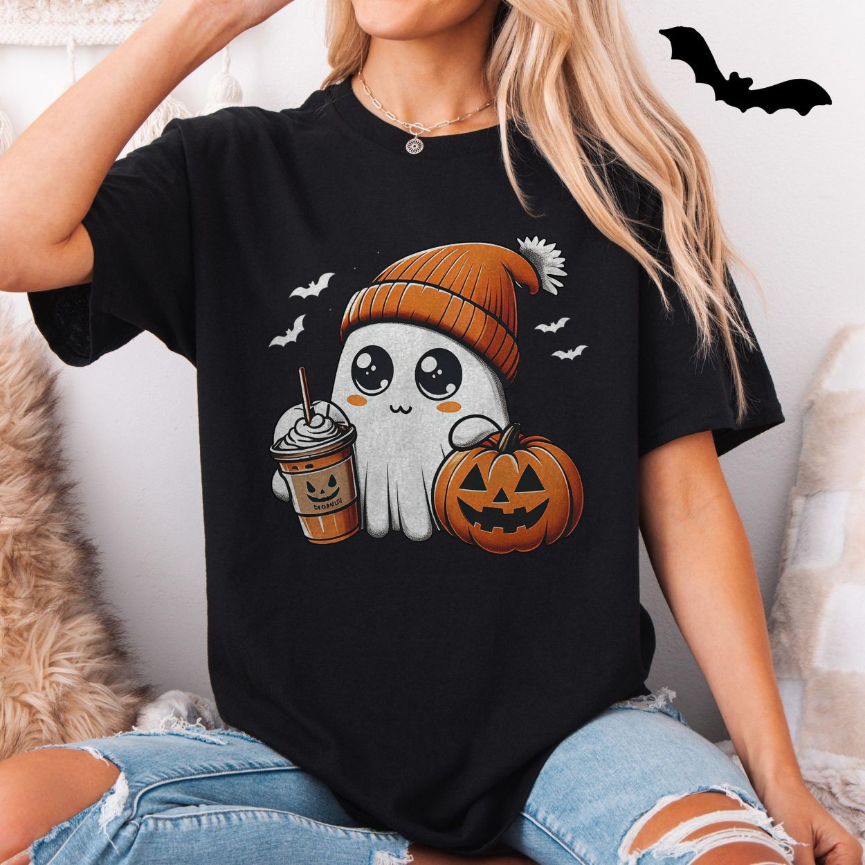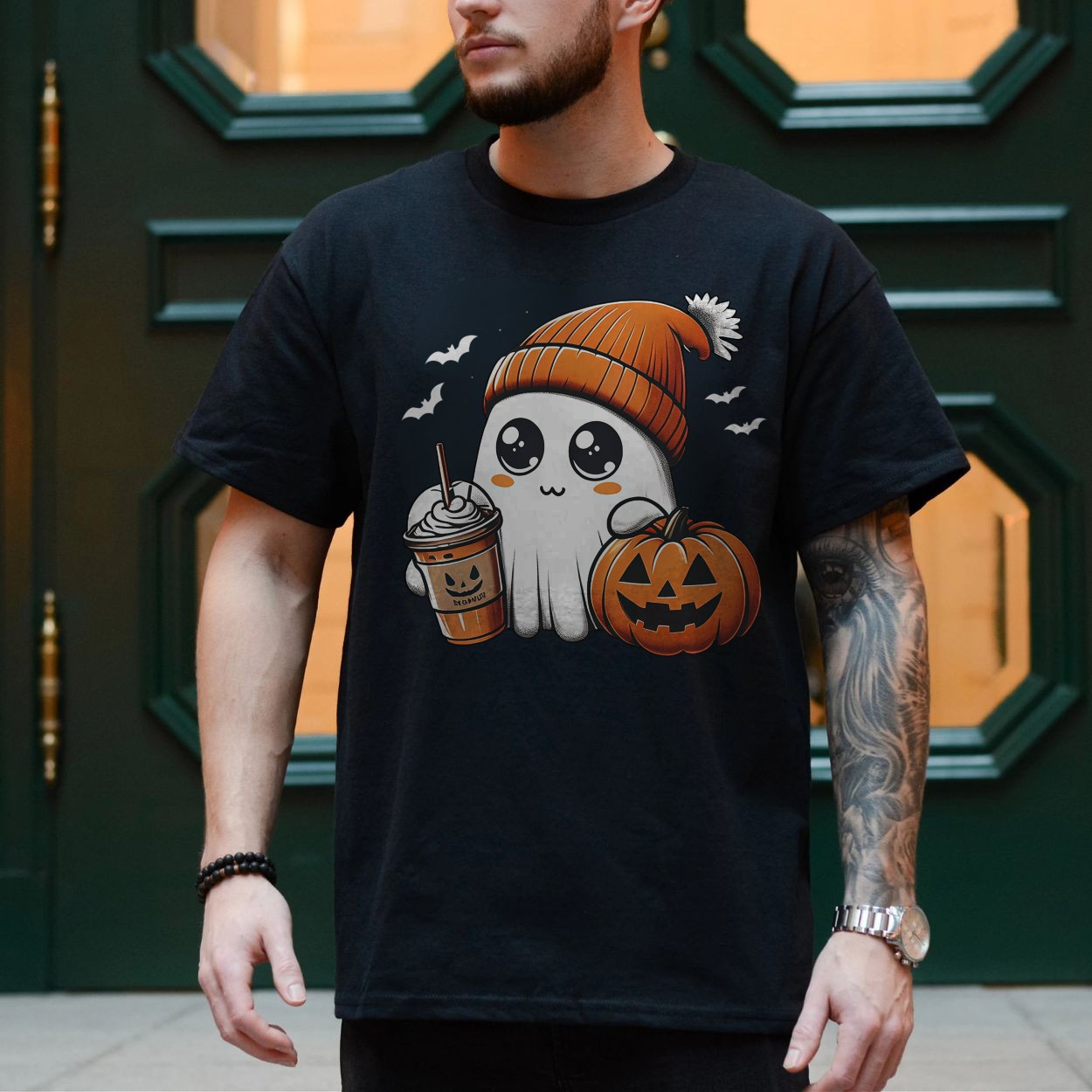 Cute Ghost Pumpkin Coffee Halloween T-Shirt