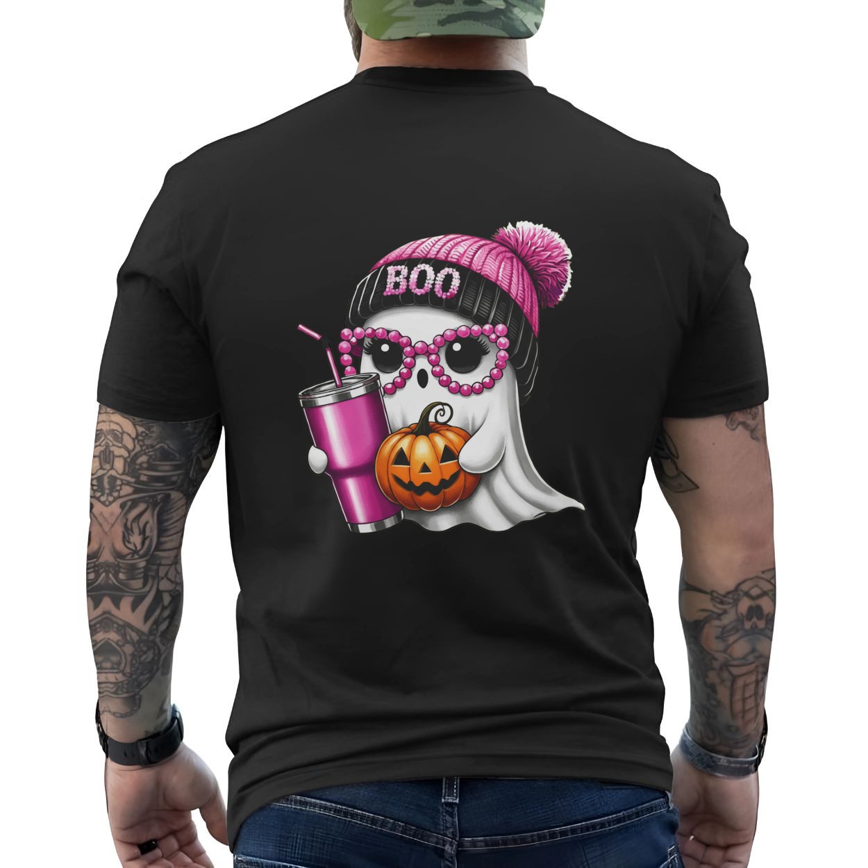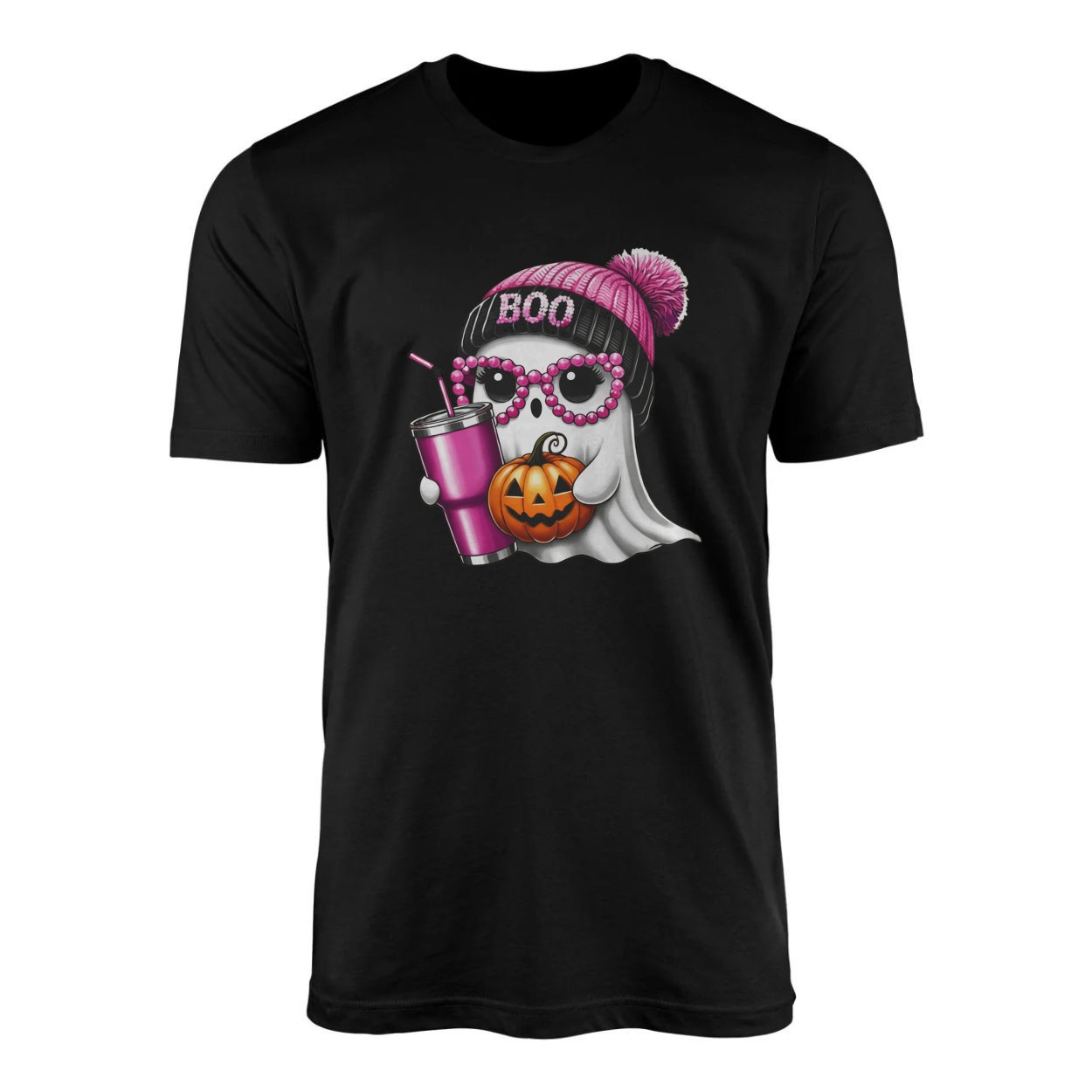 Cute Ghost with Pumpkin and Drink Funny Halloween T-Shirt