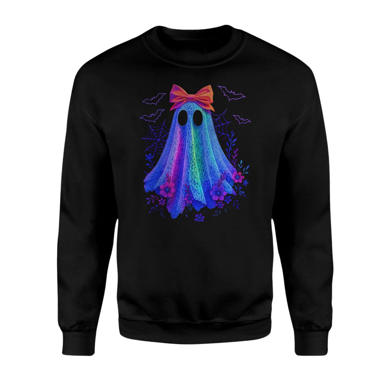 Cute Rainbow Ghost with Bow Funny Halloween T-Shirt