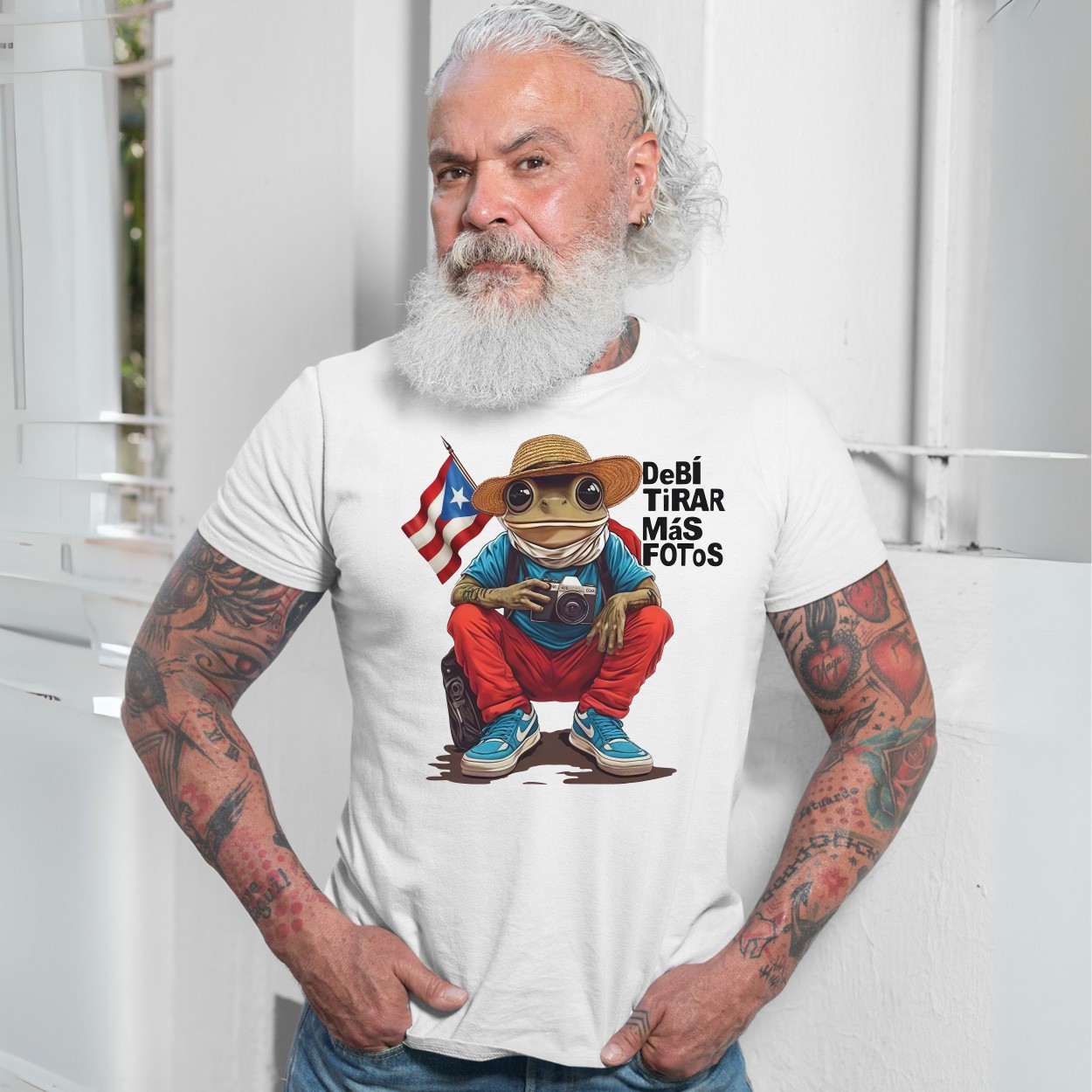 Debi Tirar Mas Fotos – Puerto Rico Flag Frog Photographer Graphic T-shirt