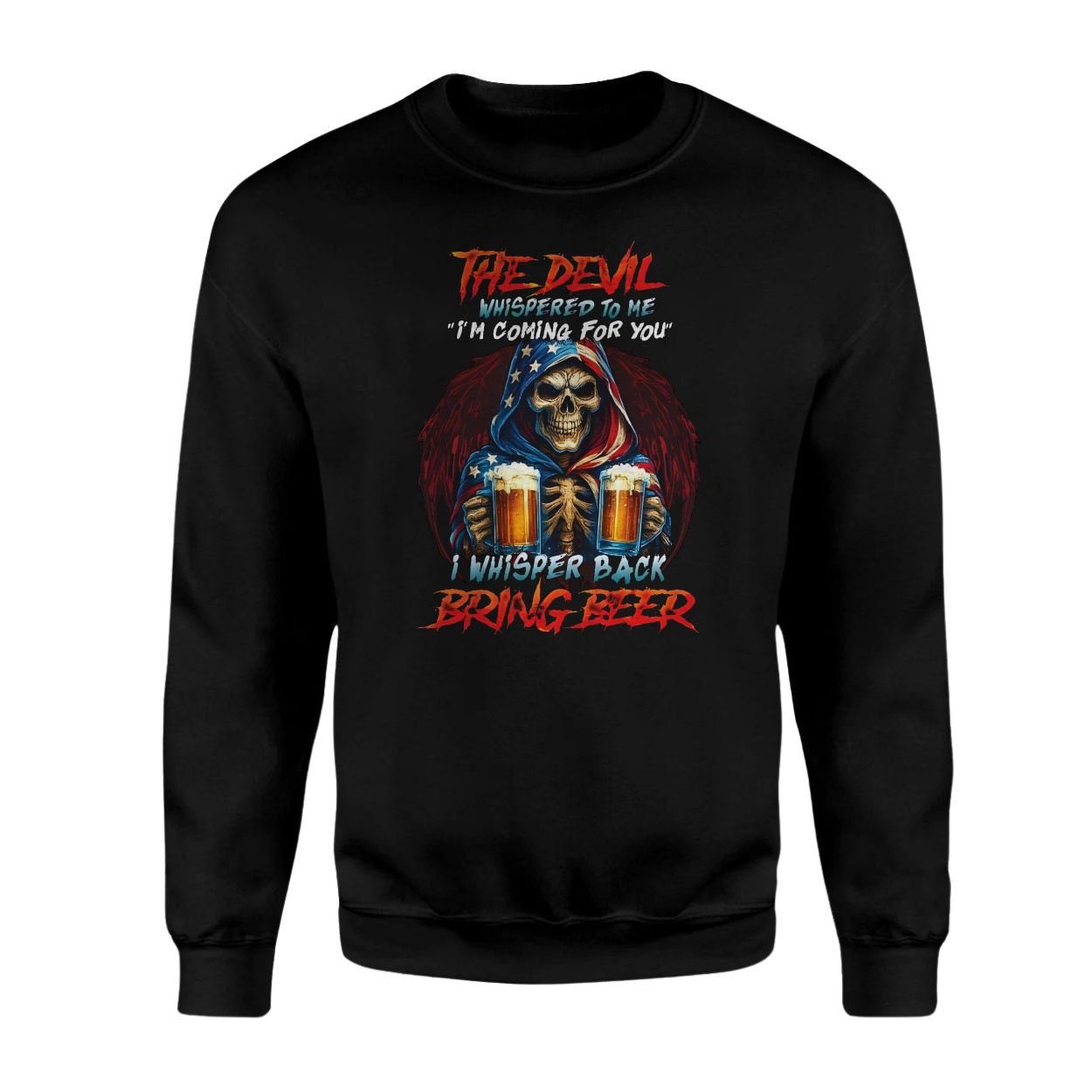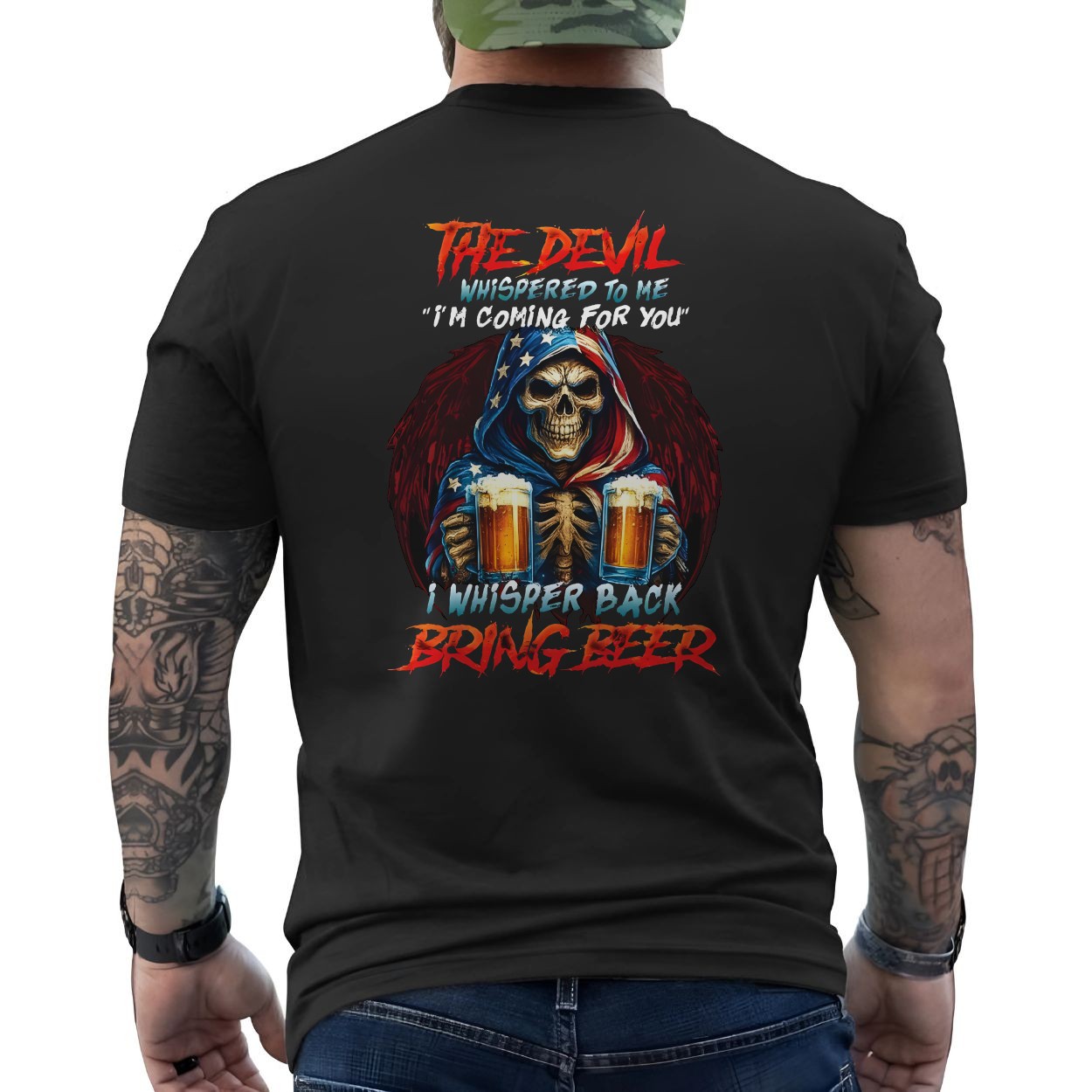 Devil Whisper Bring Beer Skeleton Funny Drinking T-Shirt