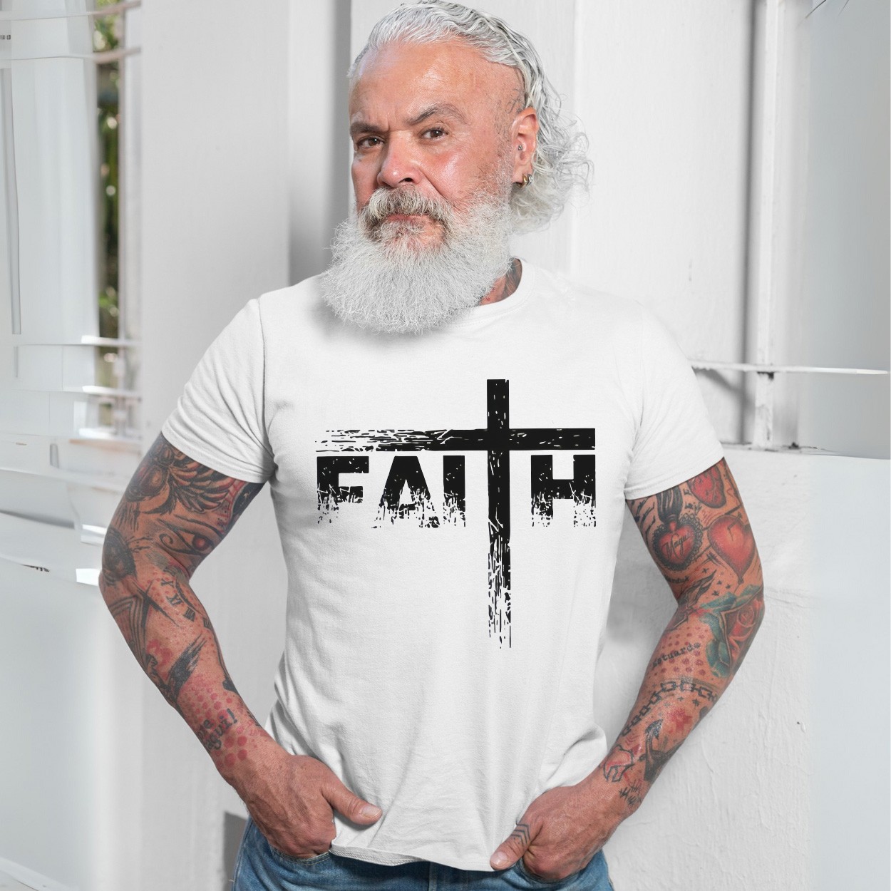 Faith Cross Christian Grunge Style T-Shirt