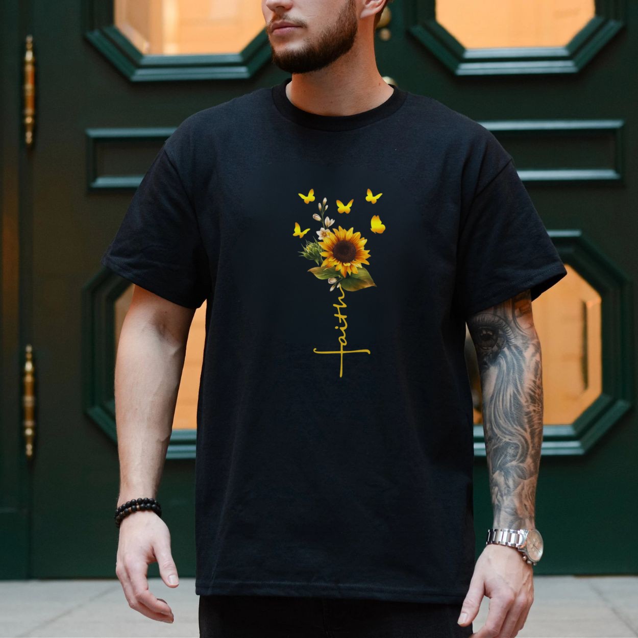 Faith Sunflower and Butterfly Inspirational T-Shirt