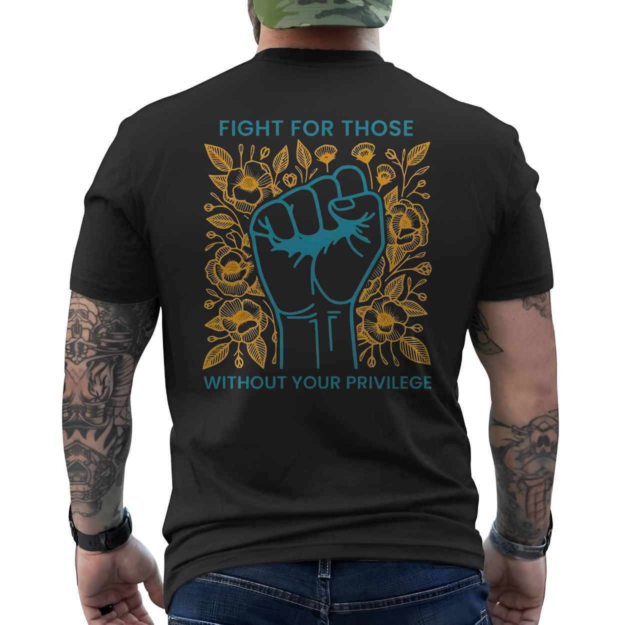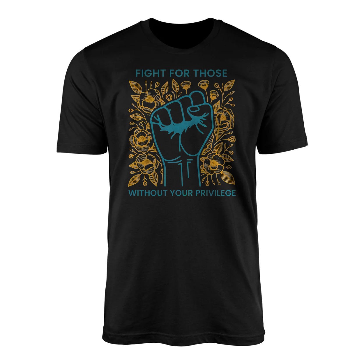 Fight for Those Without Your Privilege – Raised Fist Social Justice Graphic Tee with Floral Design