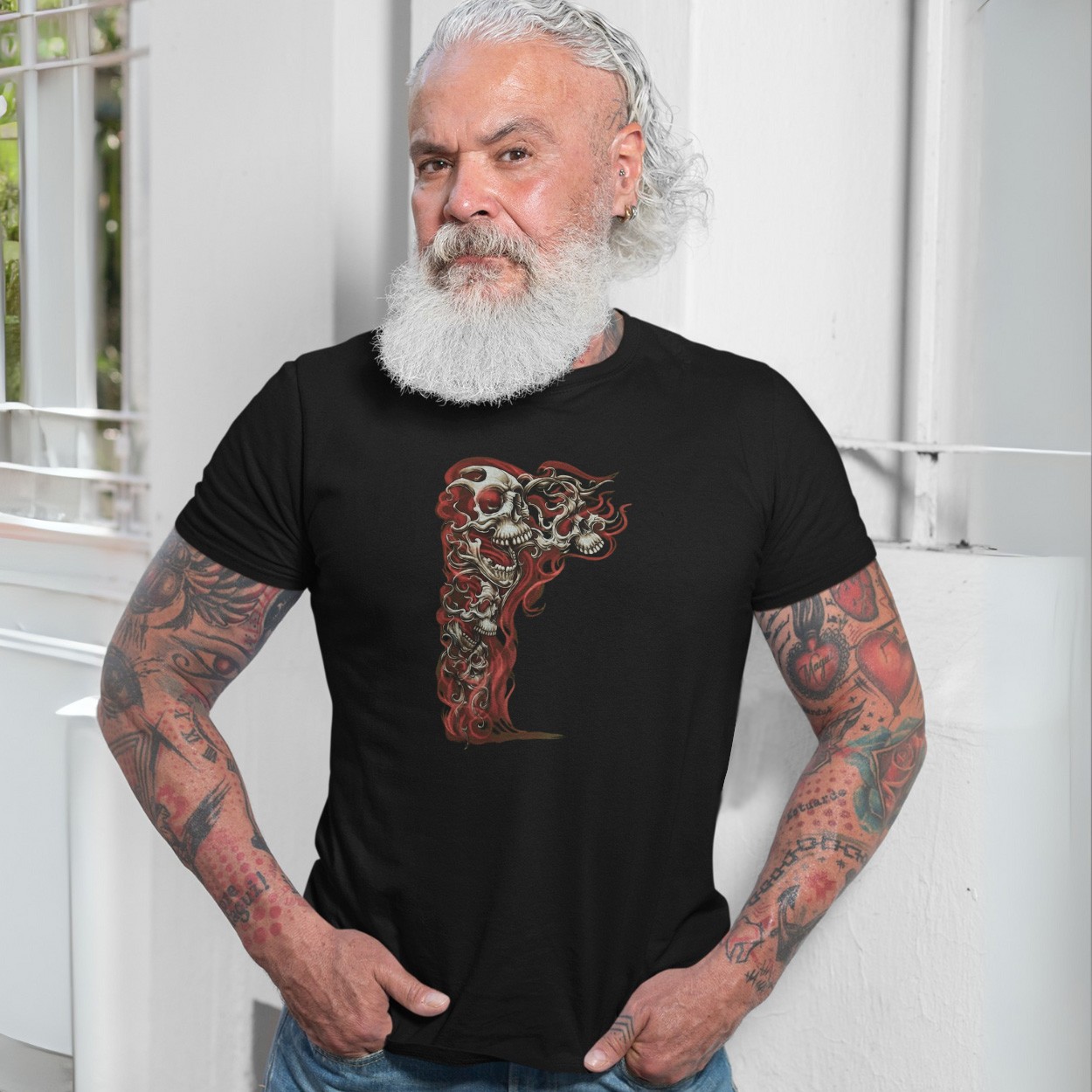 Flaming Skulls Gothic Smoke Art T-Shirt
