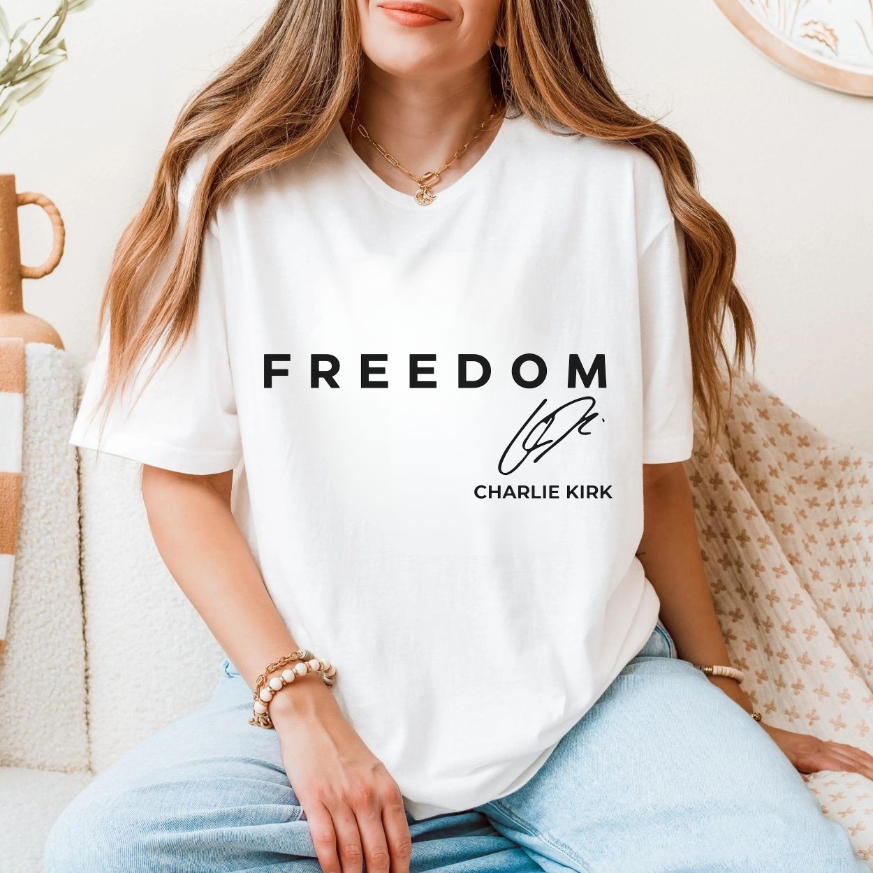 Freedom Charlie Kirk Signature Patriotic T-Shirt