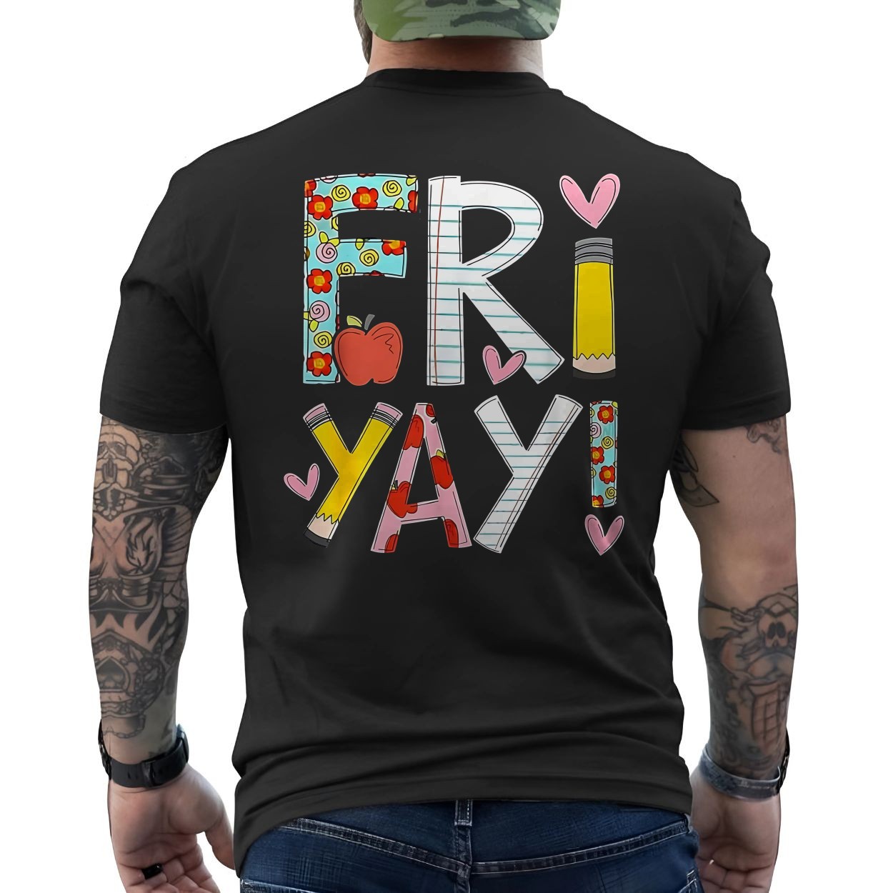 FriYay Teacher T-Shirt Happy Friday School Pencil Apple
