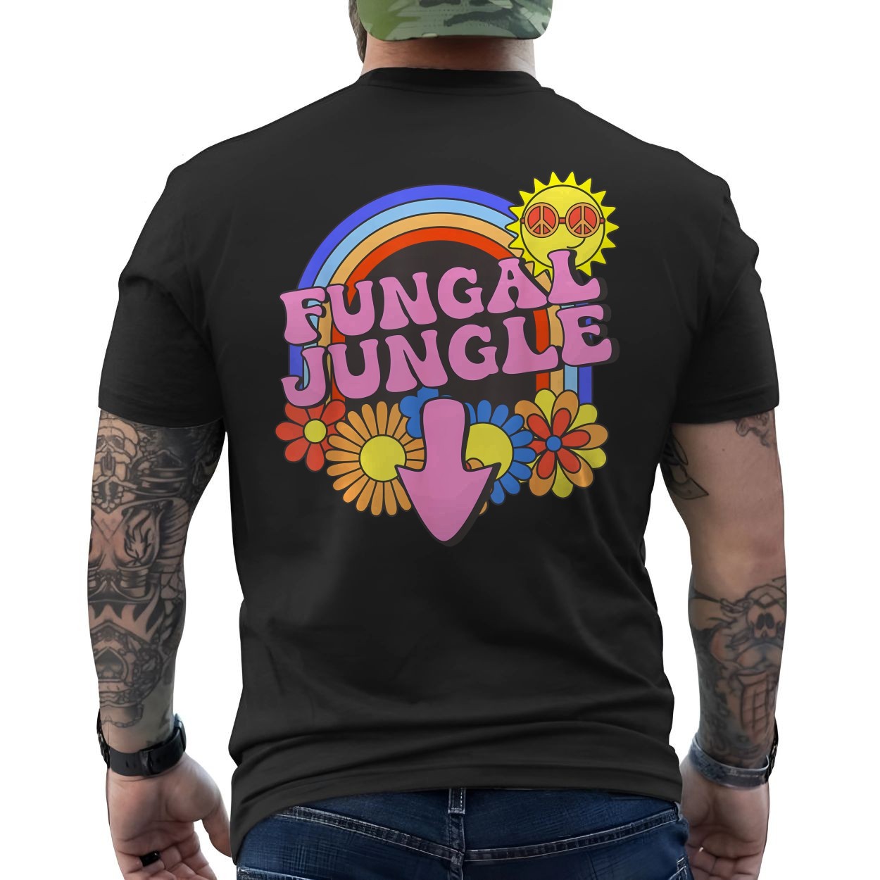 Fungal Jungle T-shirt – Retro Hippie Rainbow Flower Power Psychedelic Tee