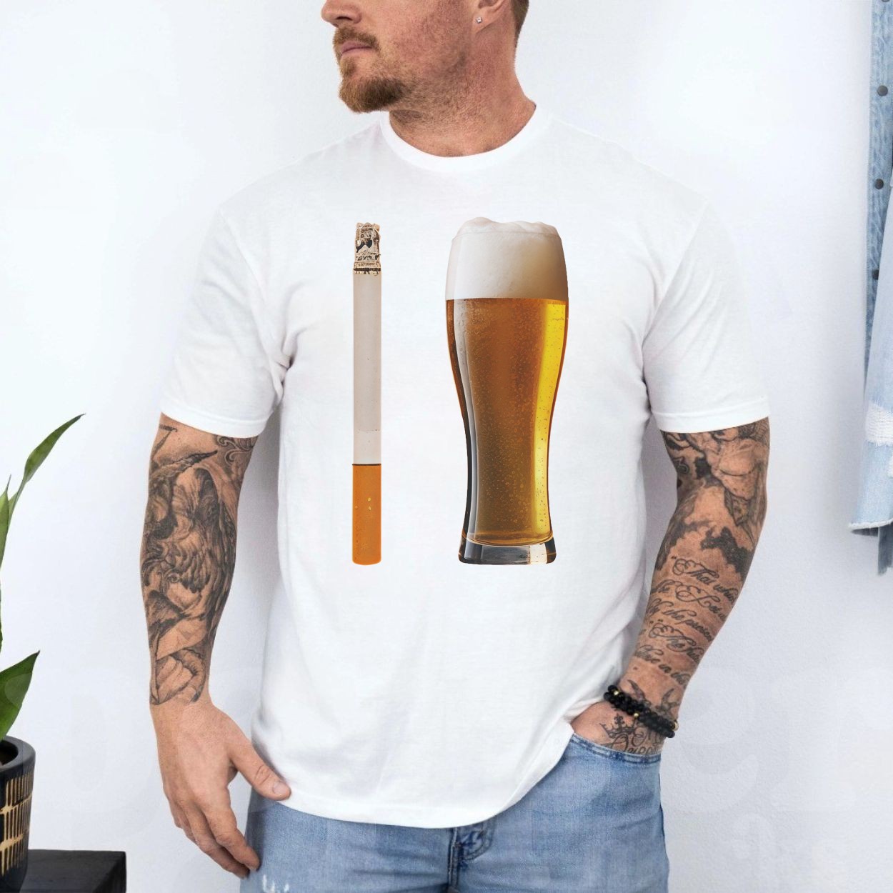 Funny Beer and a Cigarette T-Shirt Dad Joke Bar Party Gift