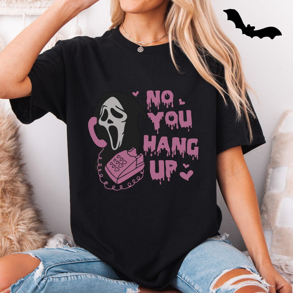 Funny Ghostface No You Hang Up Pink Horror T-Shirt