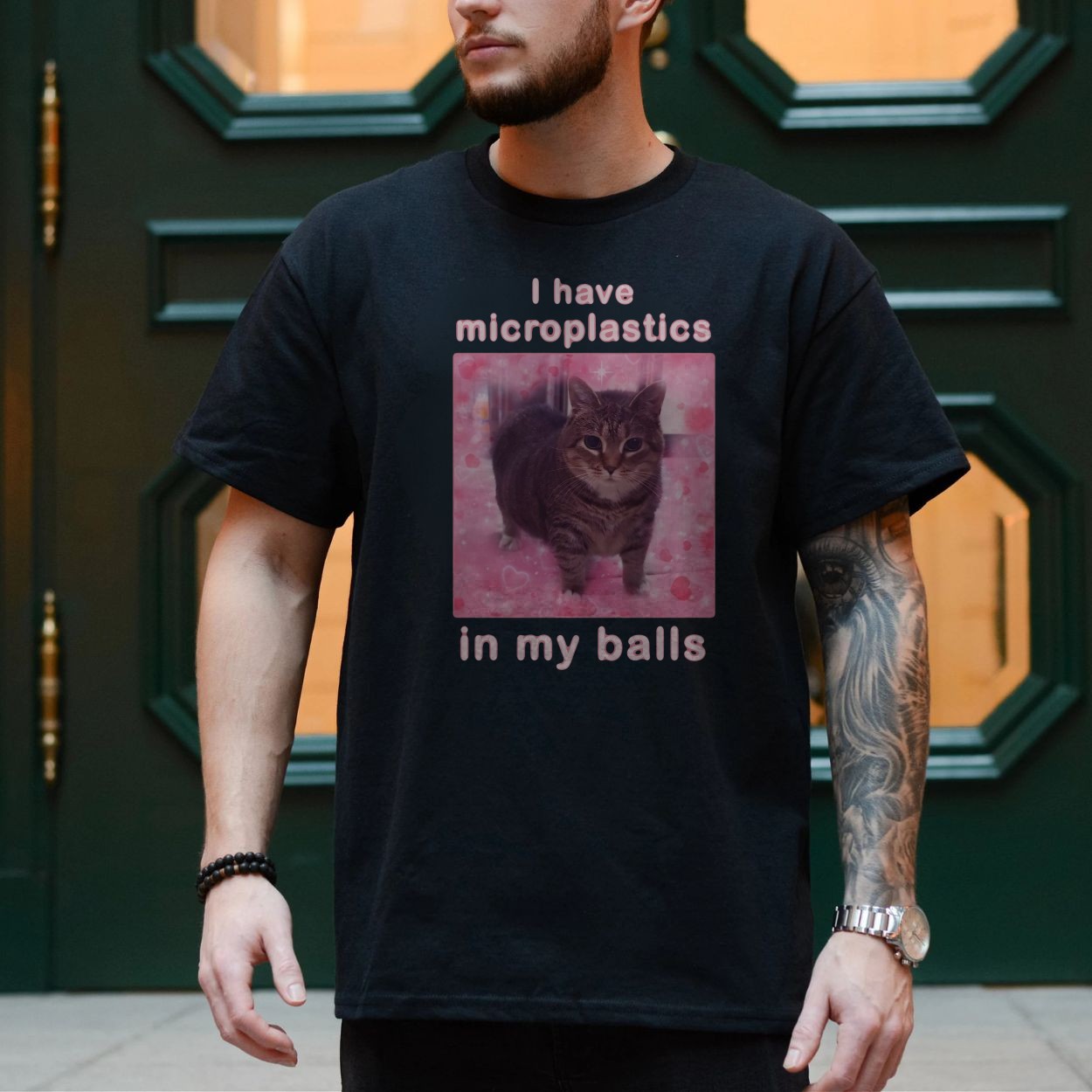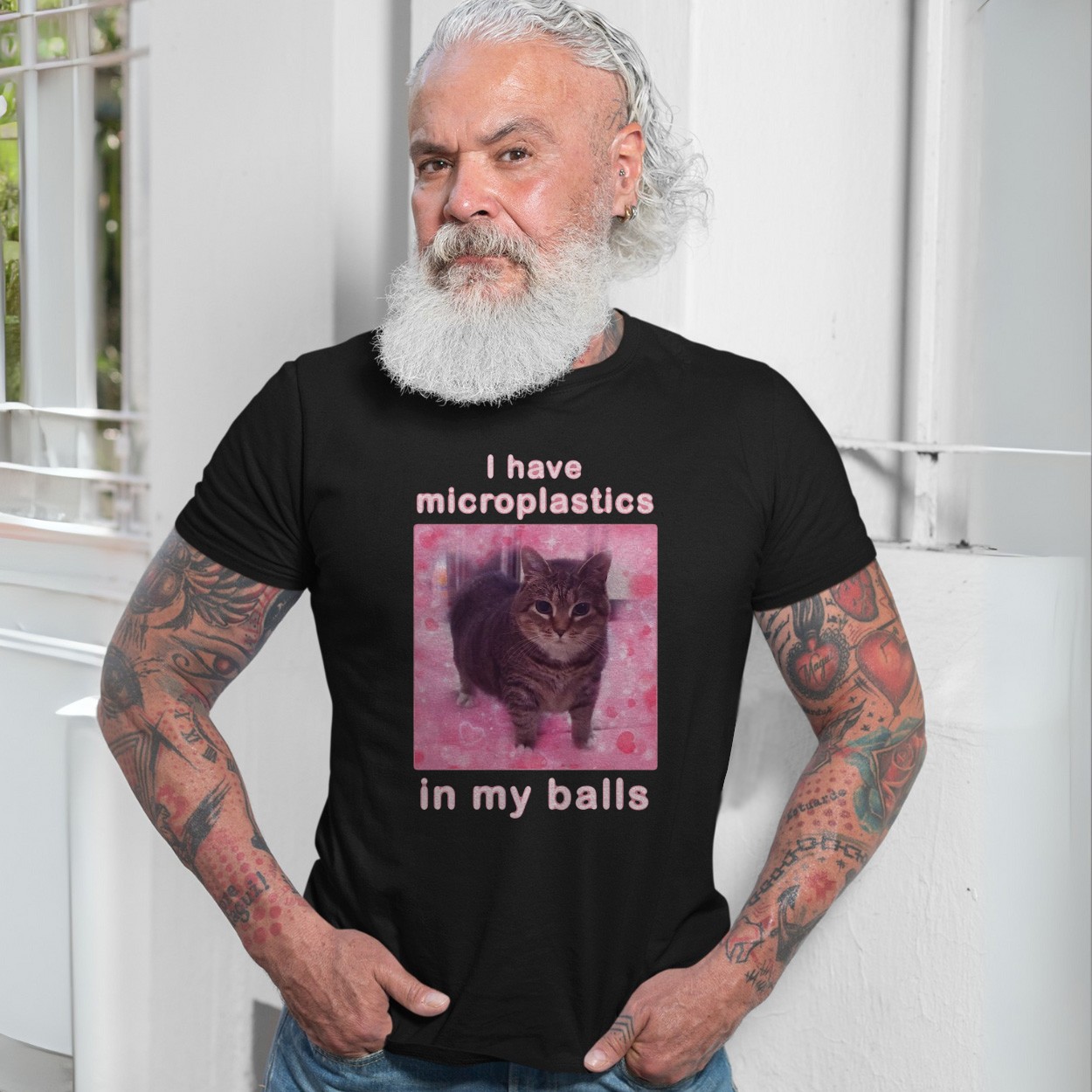 Funny I Have Microplastics In My Balls Cat T-Shirt