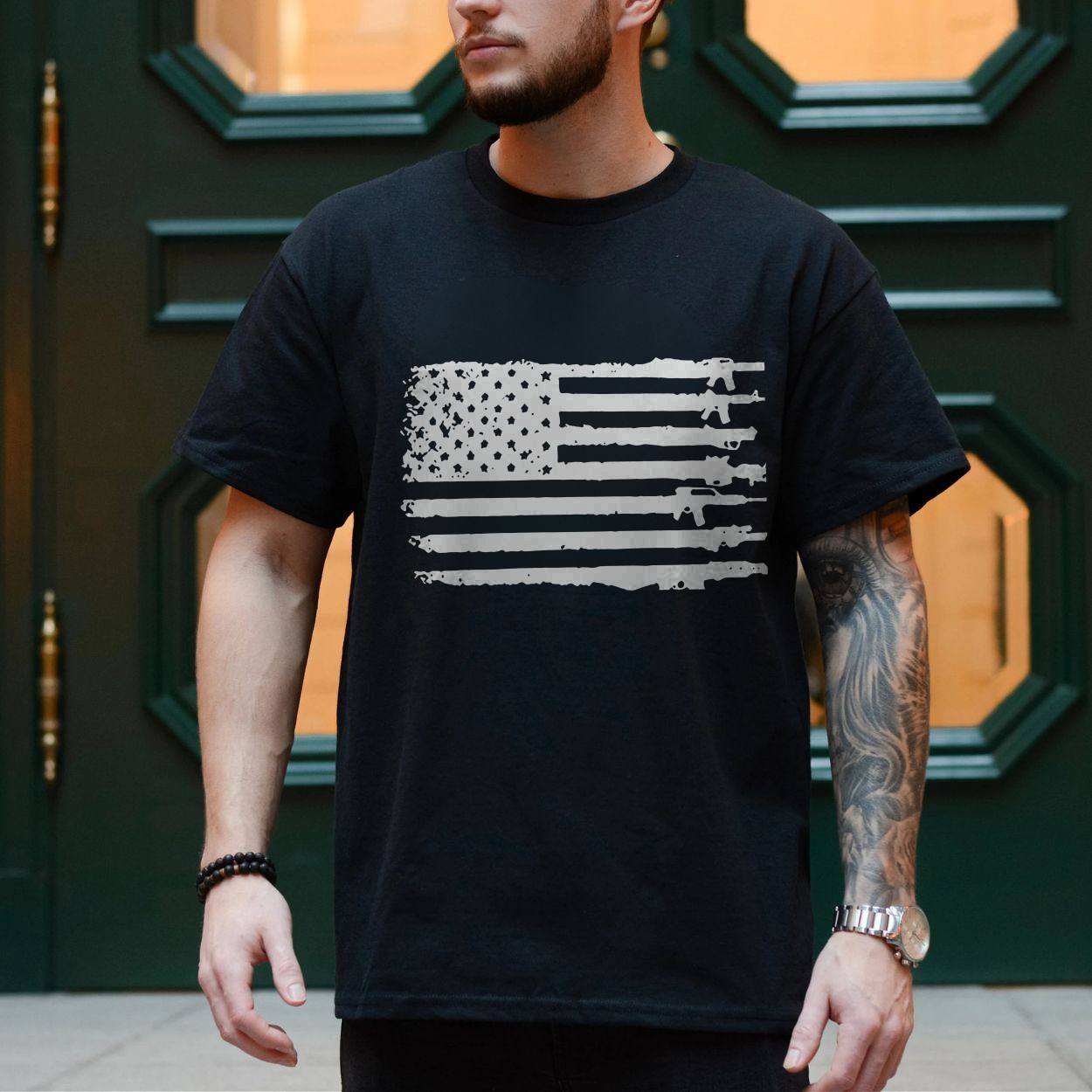 Grunge Gun Flag American Patriotic T-Shirt