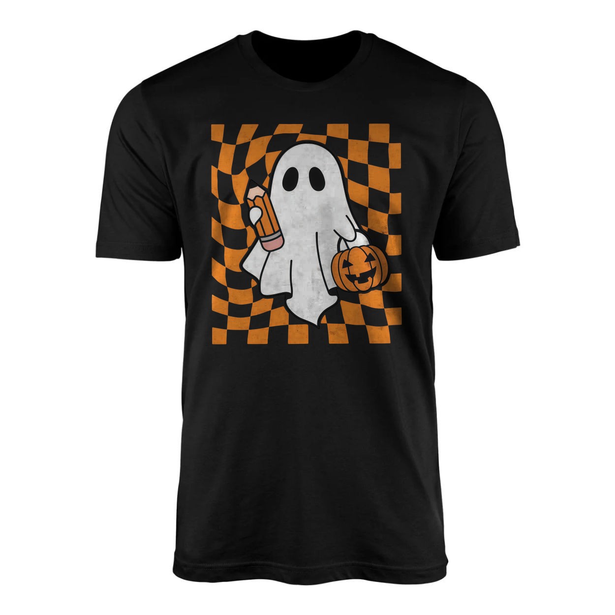 Halloween Ghost with Pumpkin and Pencil Graphic T-Shirt