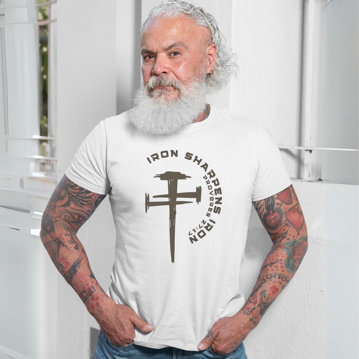 Iron Sharpens Iron Cross Nails Christian Graphic T-Shirt