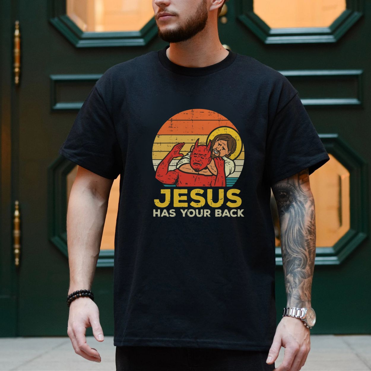 Jesus Has Your Back Vintage Sunset T-Shirt