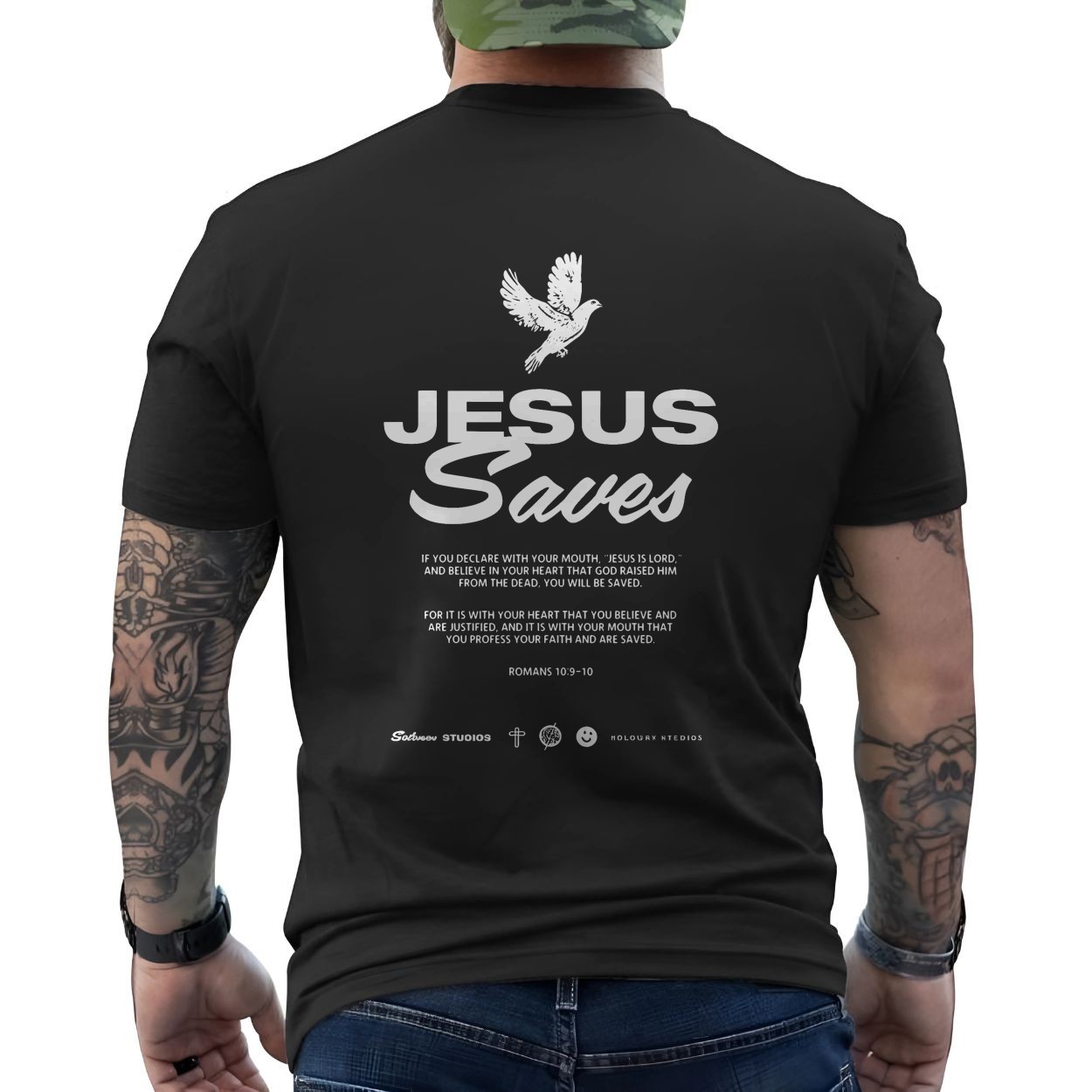 Jesus Saves Christian Bible Verse Romans 10 9-10 T-Shirt