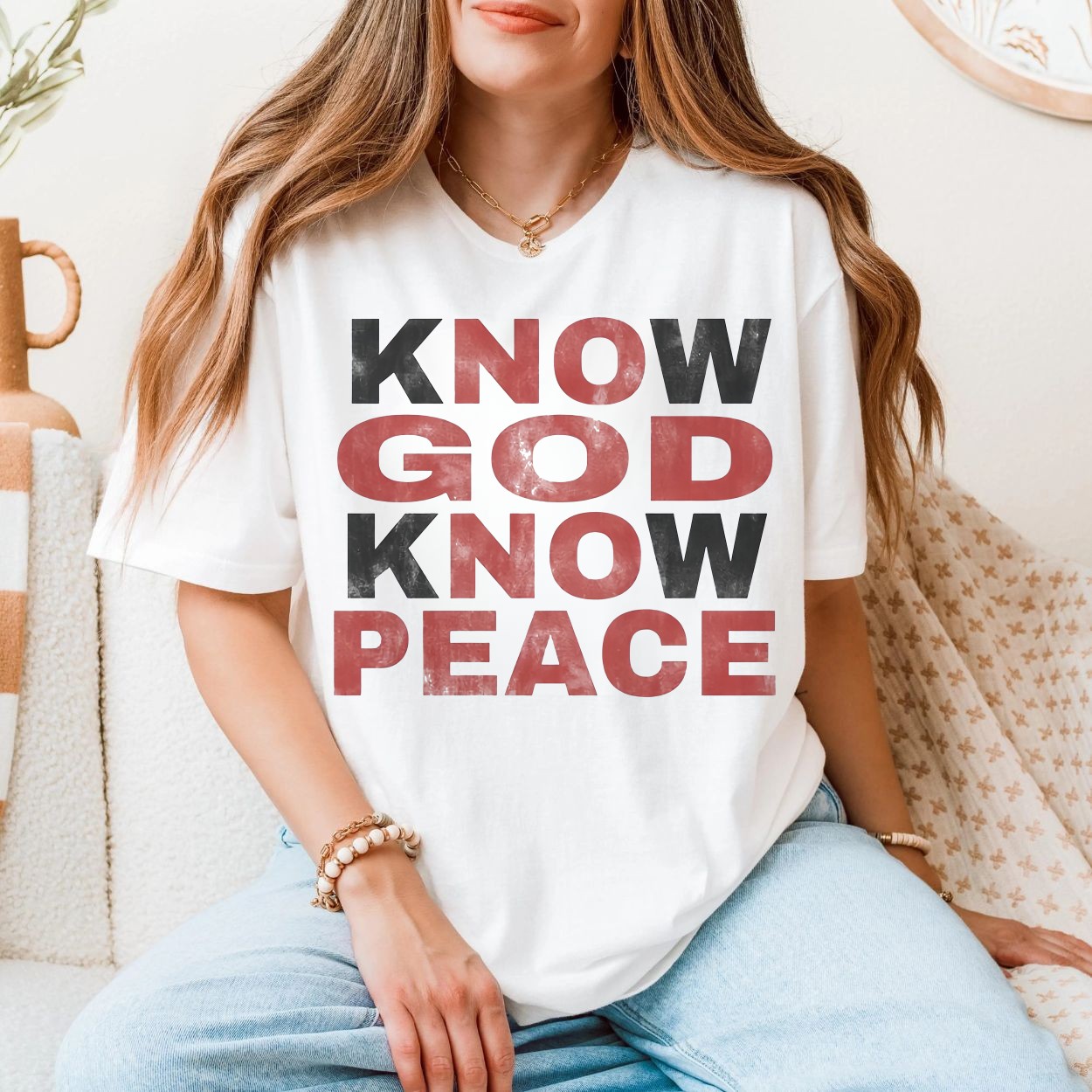 Know God, Know Peace – Christian Faith Bold Typography Graphic Tee