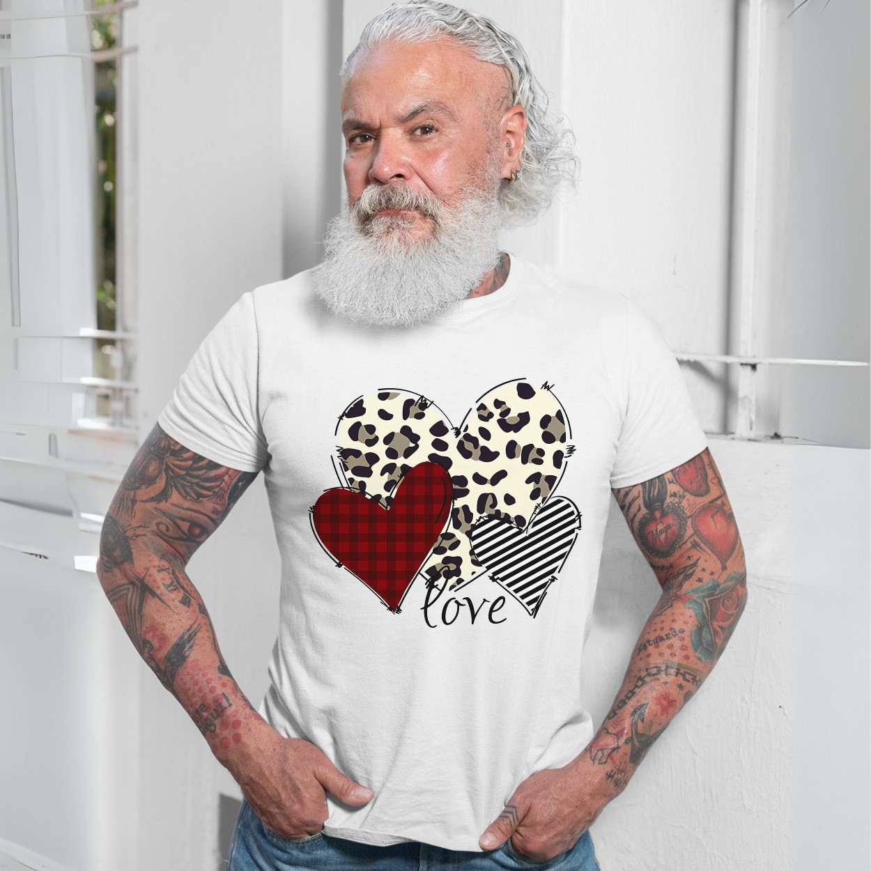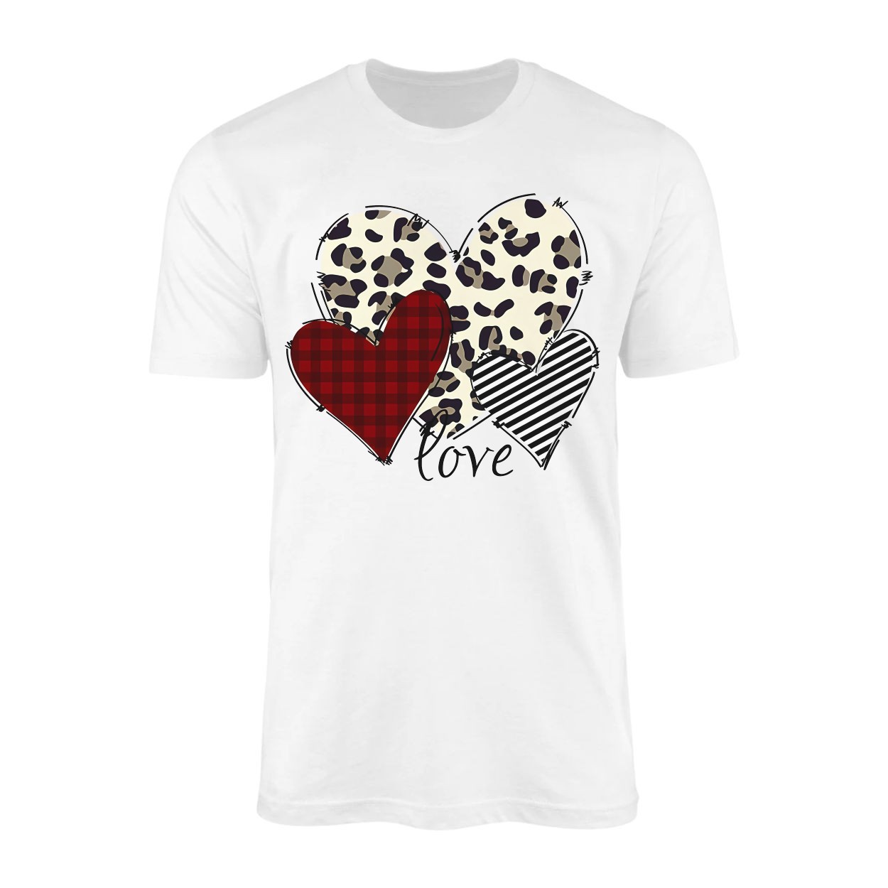 Leopard Plaid and Striped Hearts Love Graphic T-Shirt