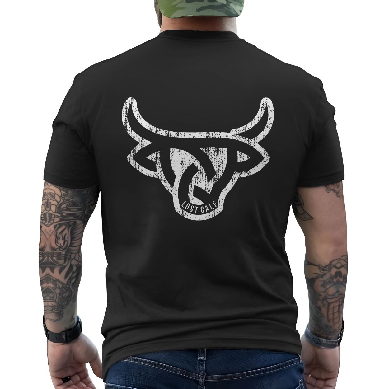 Lost Calf Distressed Western Bull Head Graphic T-Shirt