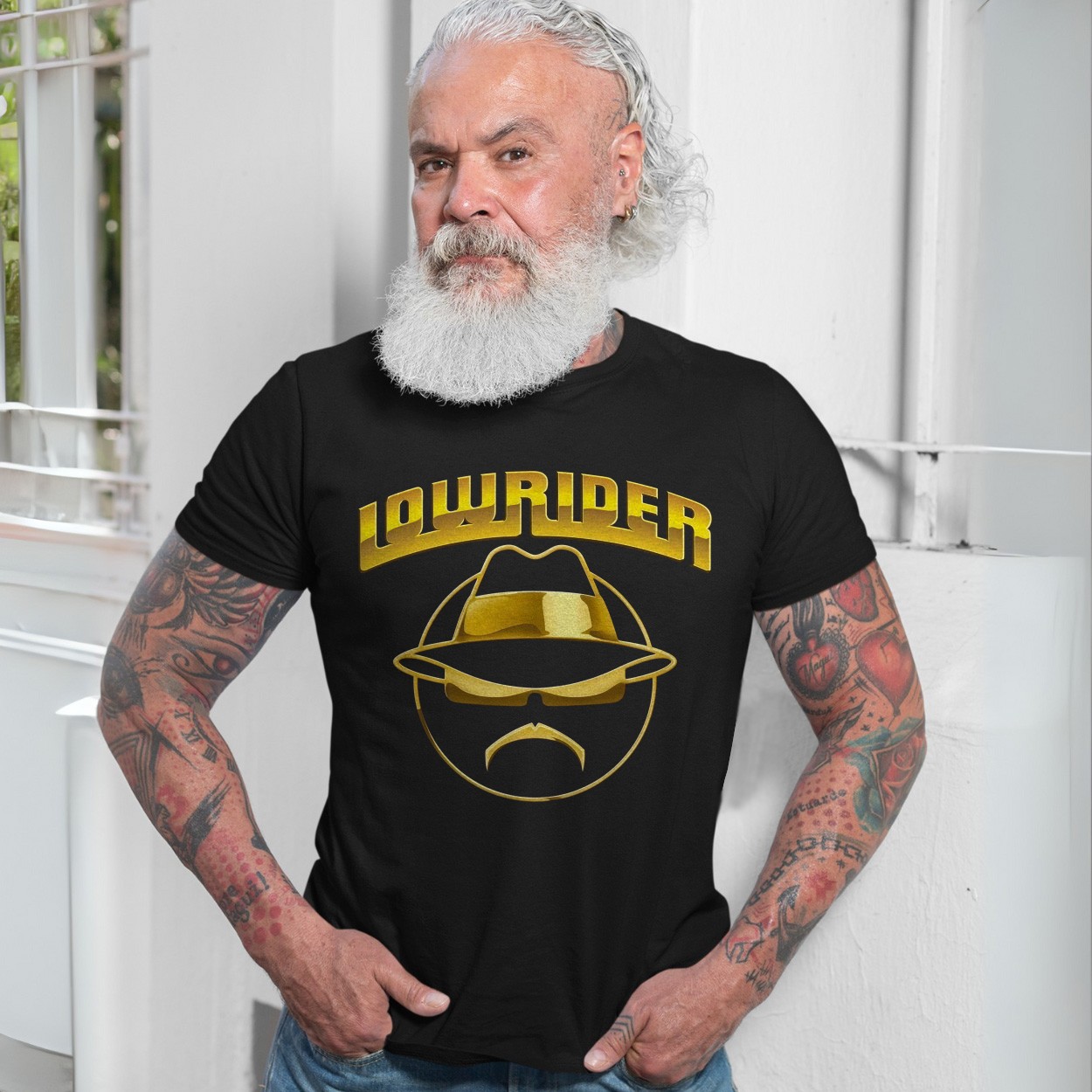 Lowrider Gold Logo Chicano Style Hat and Shades Graphic T-Shirt