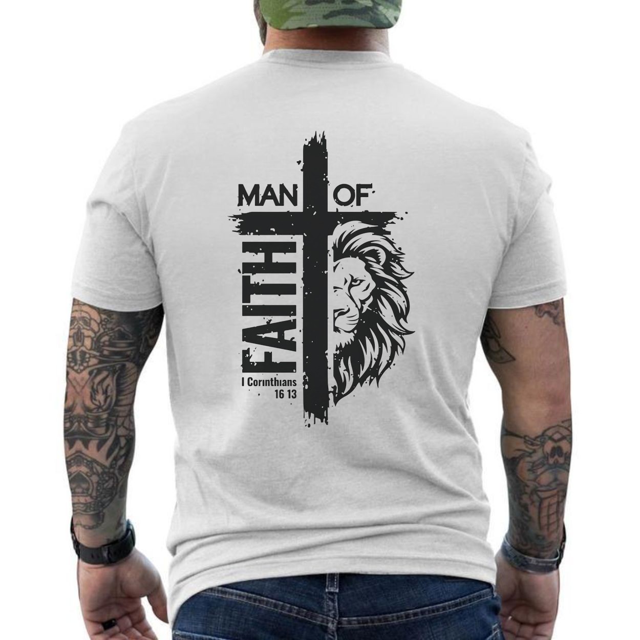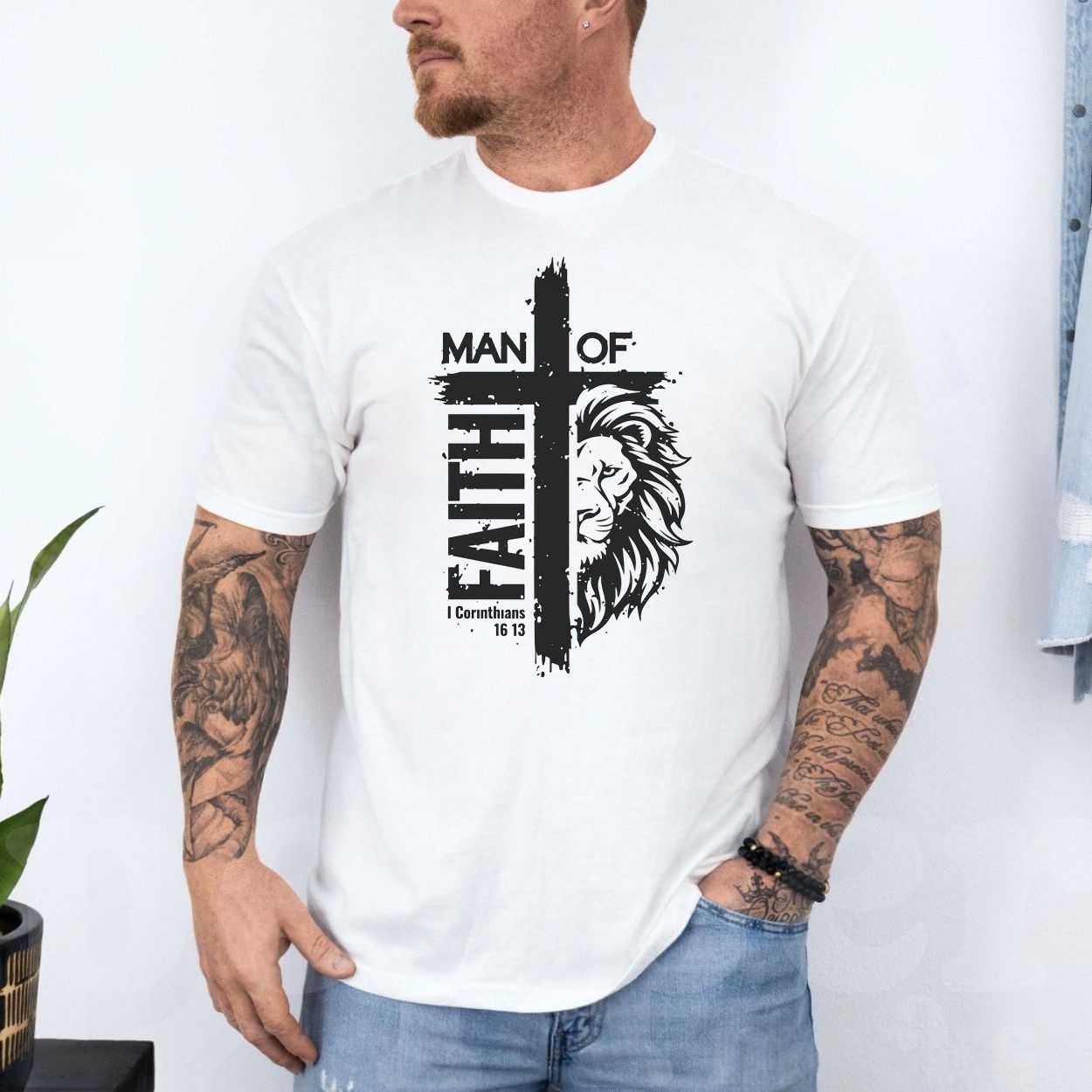Man Of Faith Christian Lion Cross T-Shirt