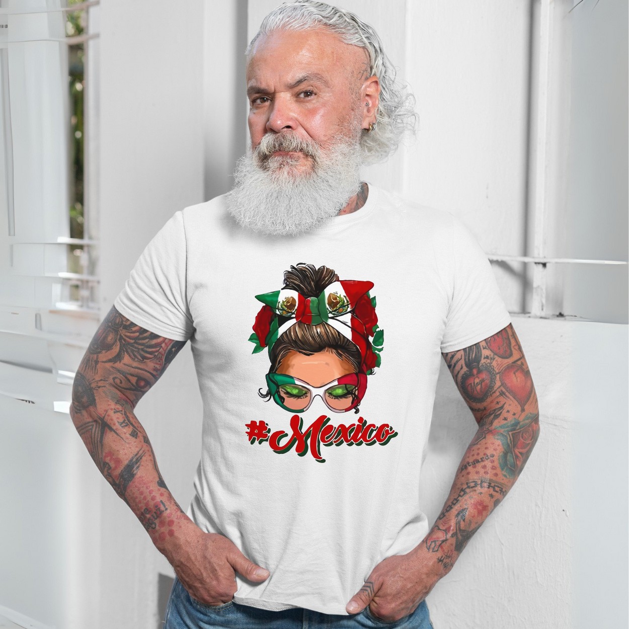 Messy Bun Mexico Flag T-Shirt Mexican Pride Gift for Women