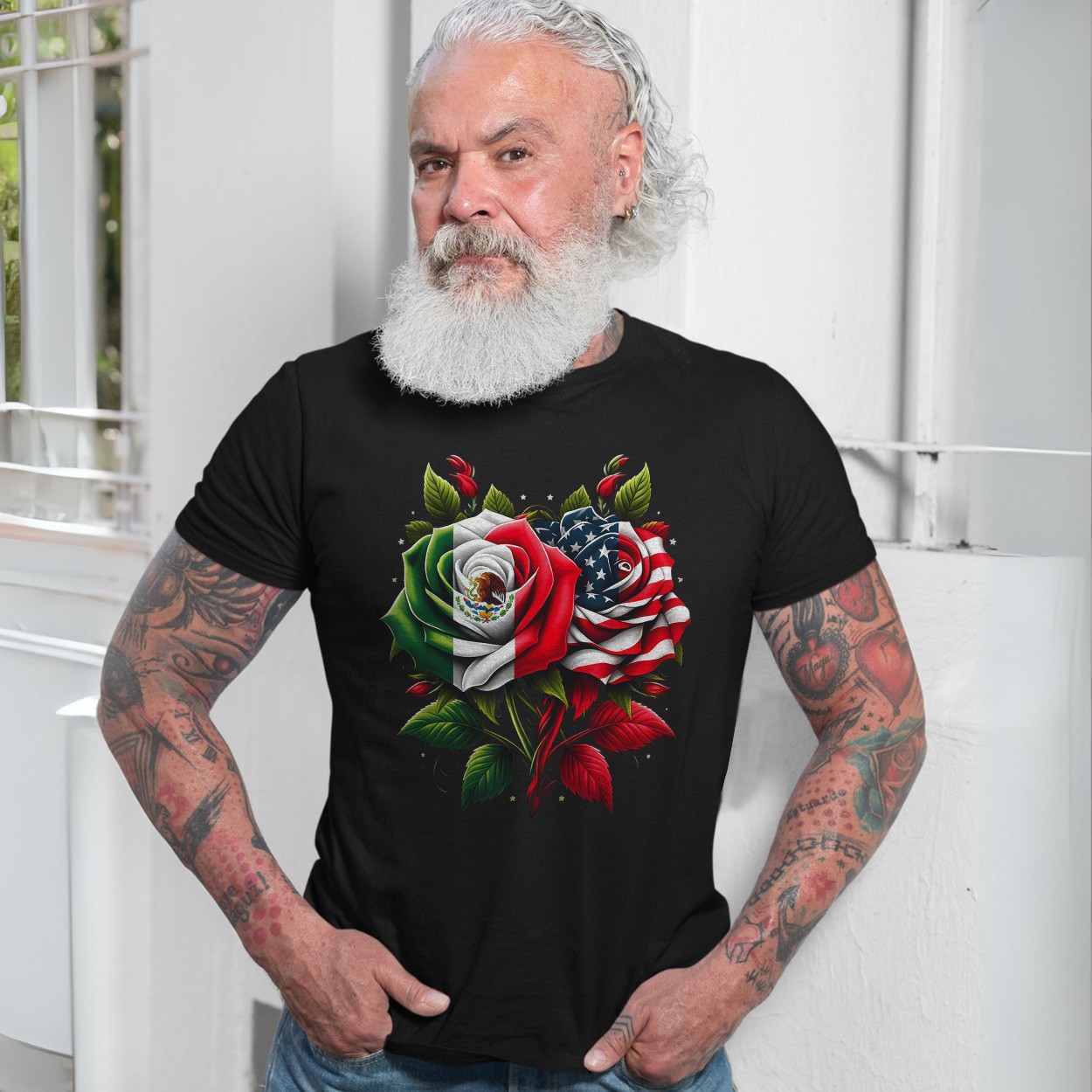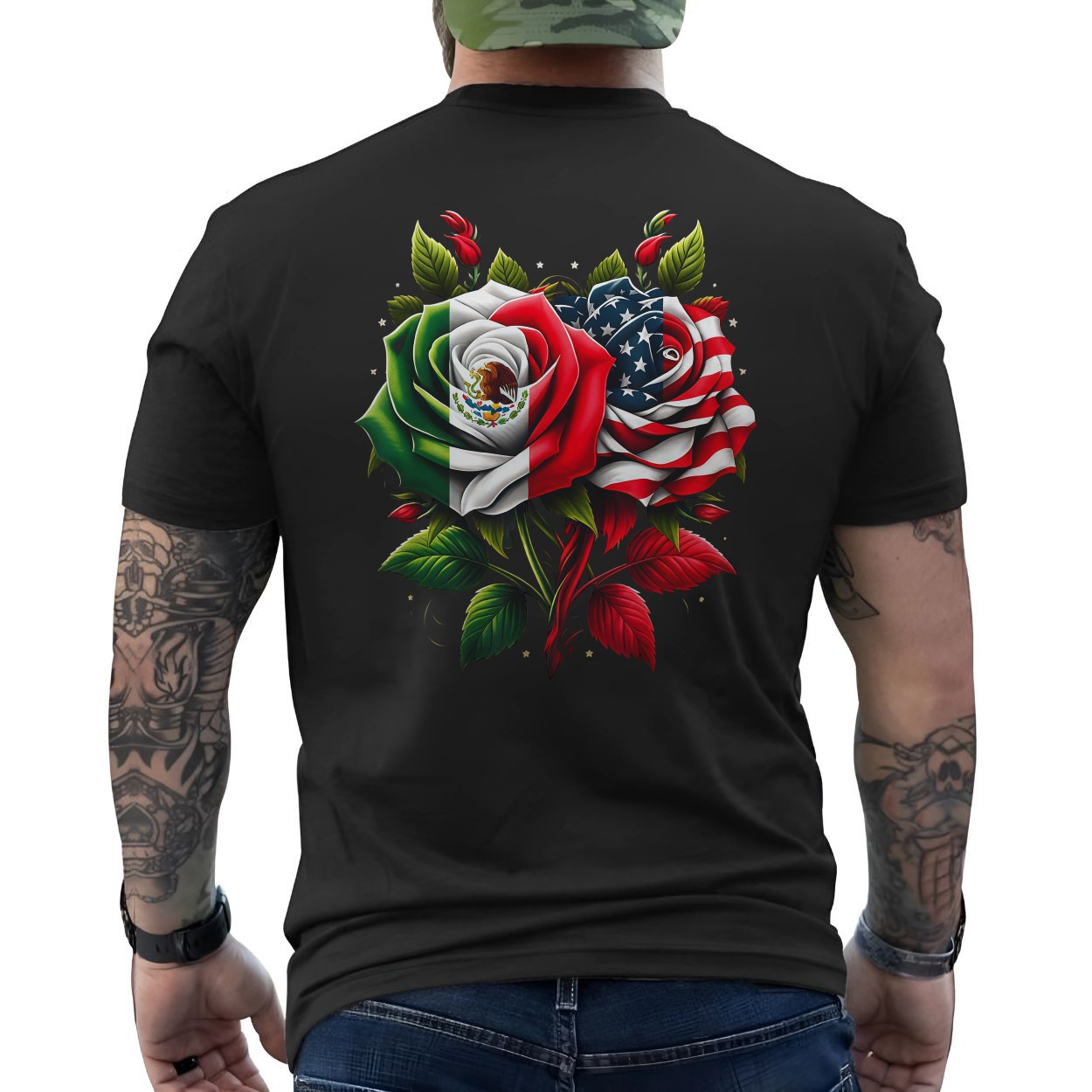 Mexico USA Flag Rose Friendship T-Shirt