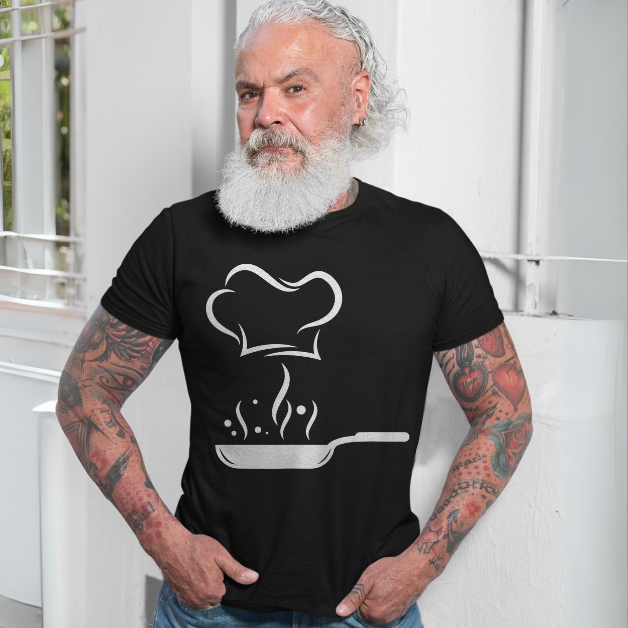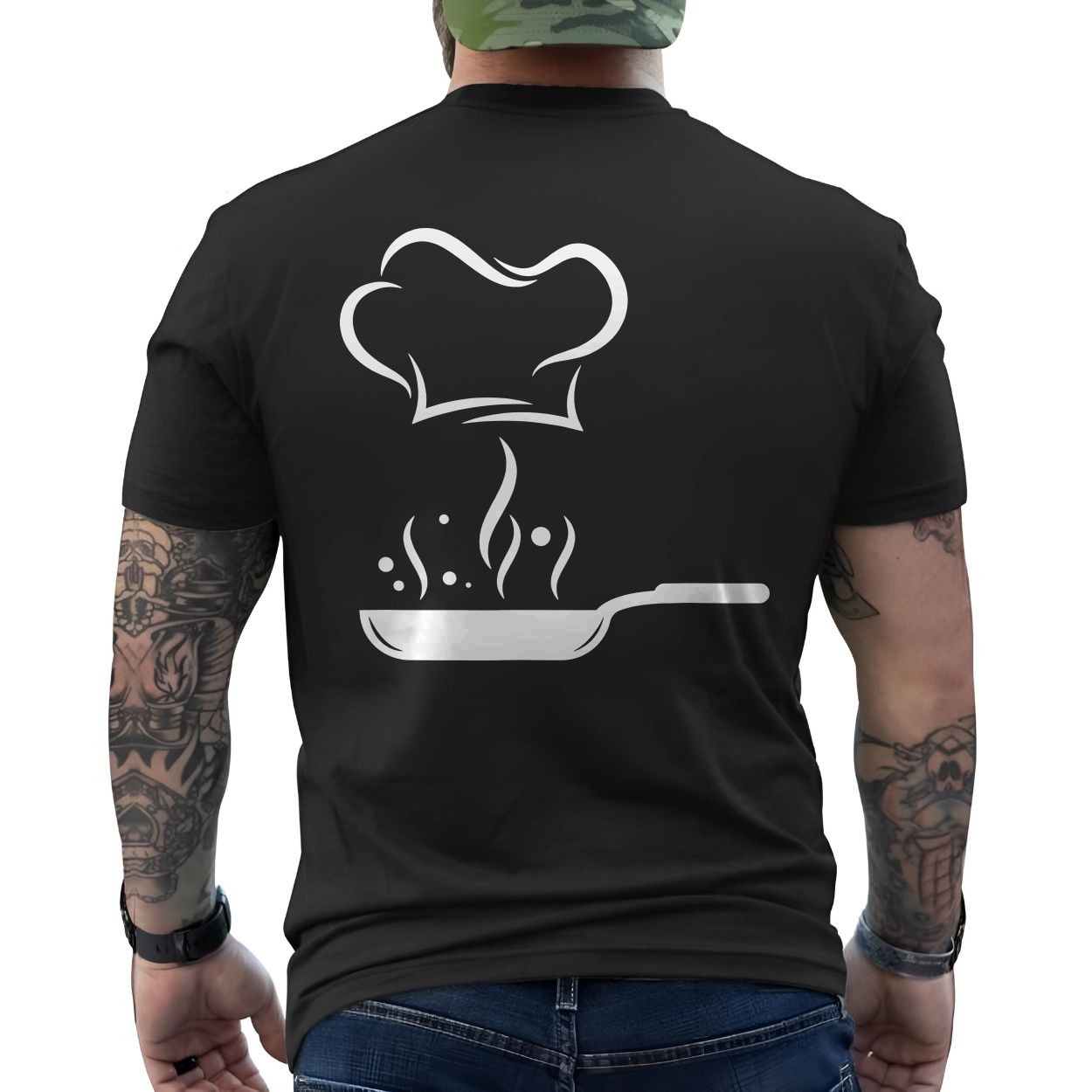 Minimalist Chef Hat and Frying Pan Cooking T-Shirt