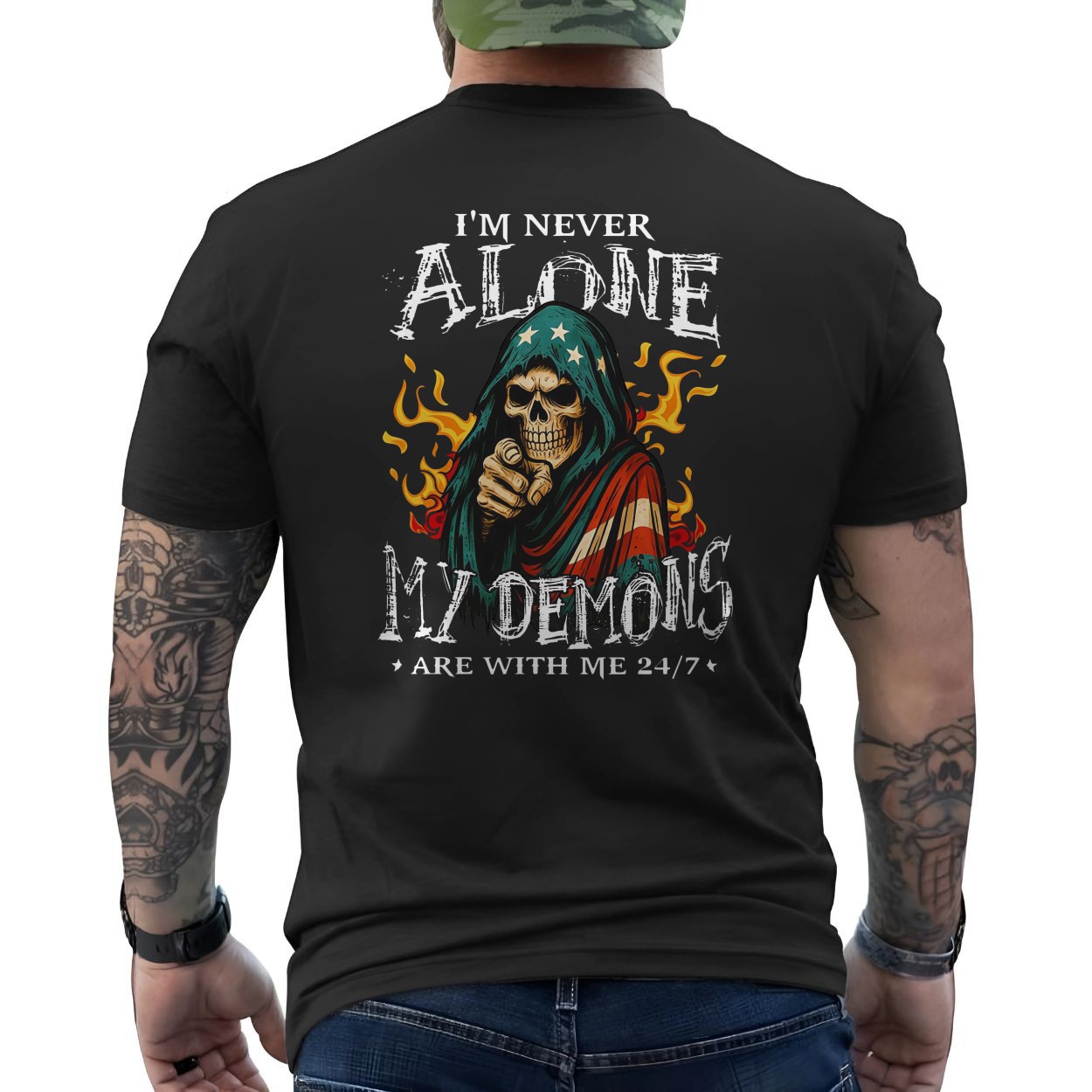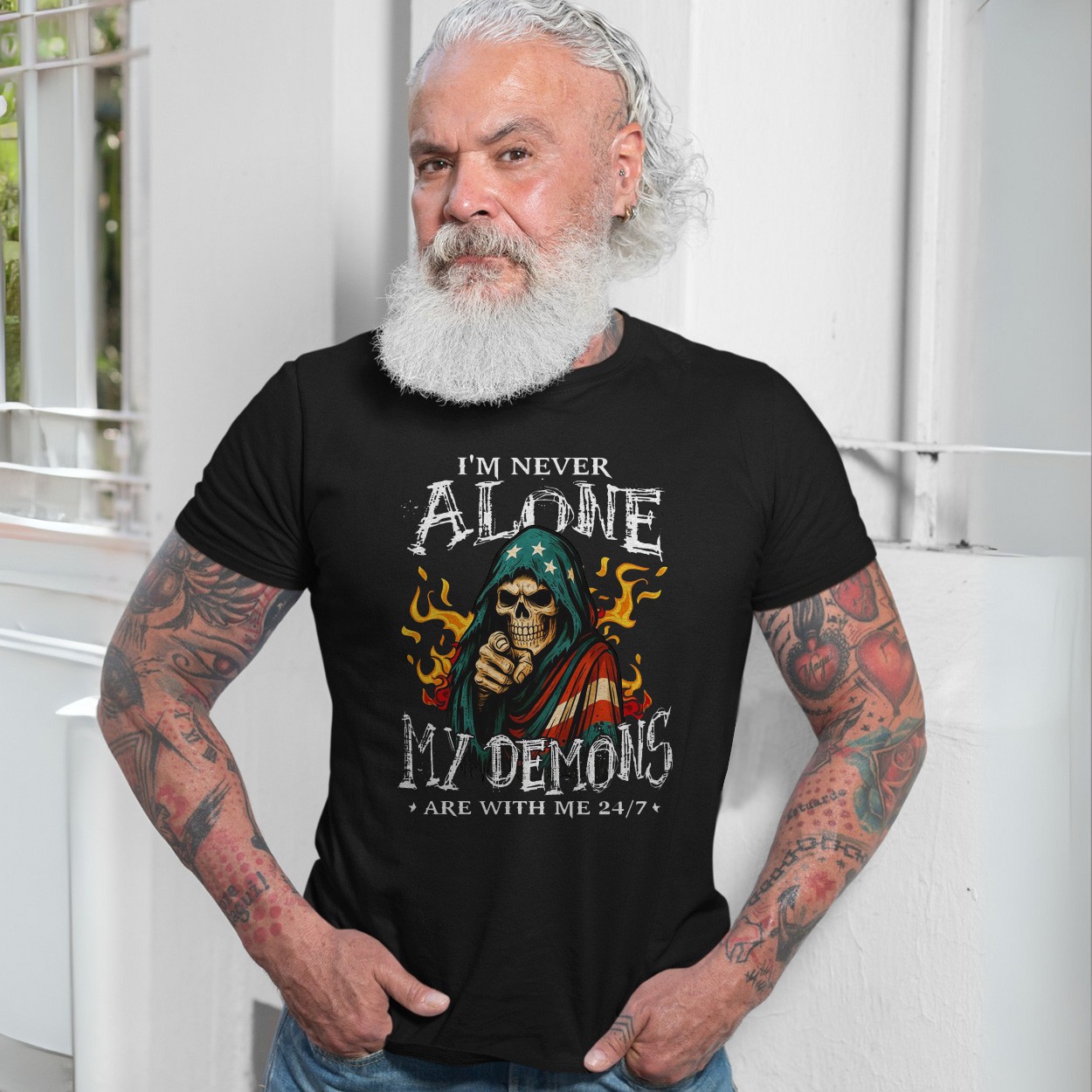 Never Alone My Demons T-Shirt – Grim Reaper Flames Skull Tee