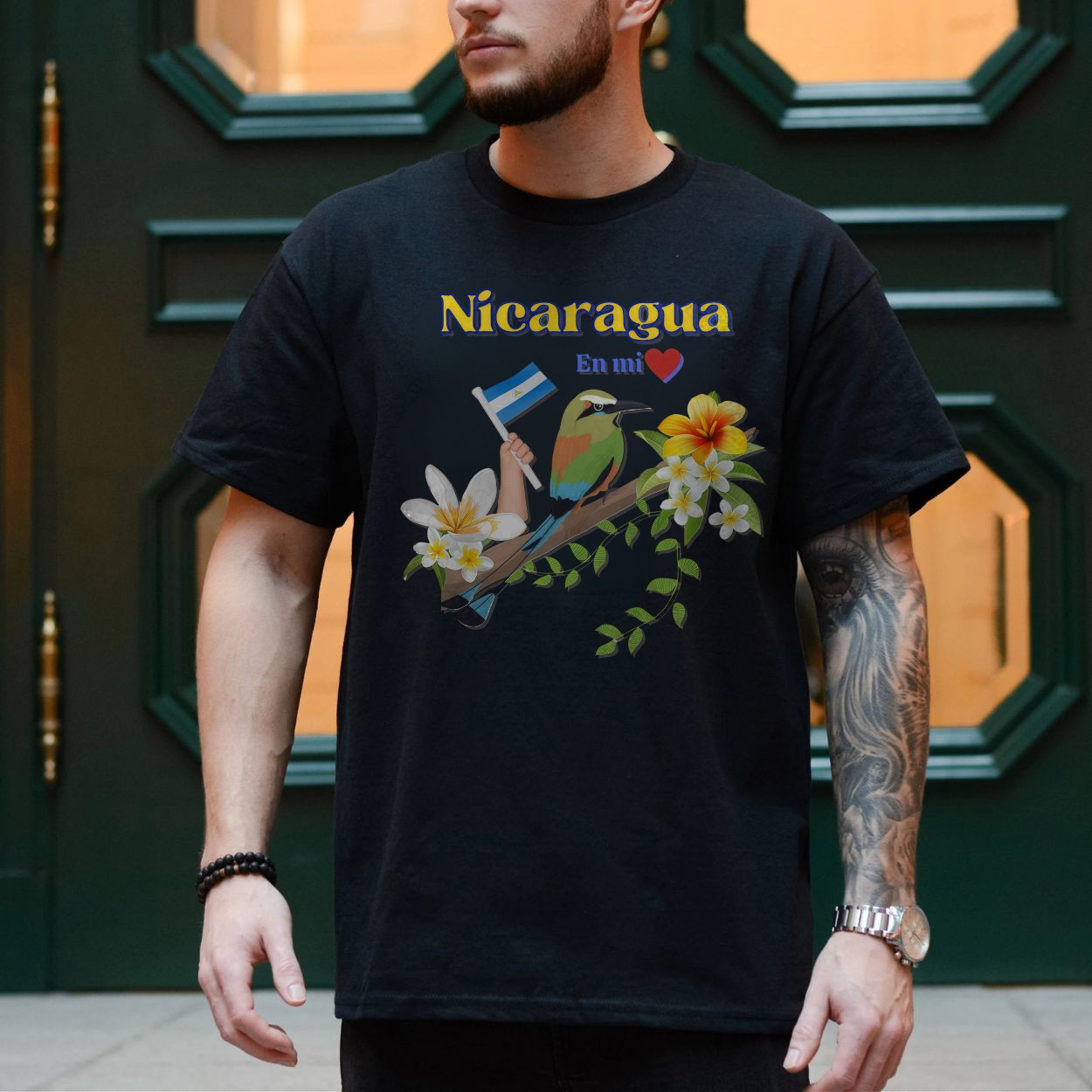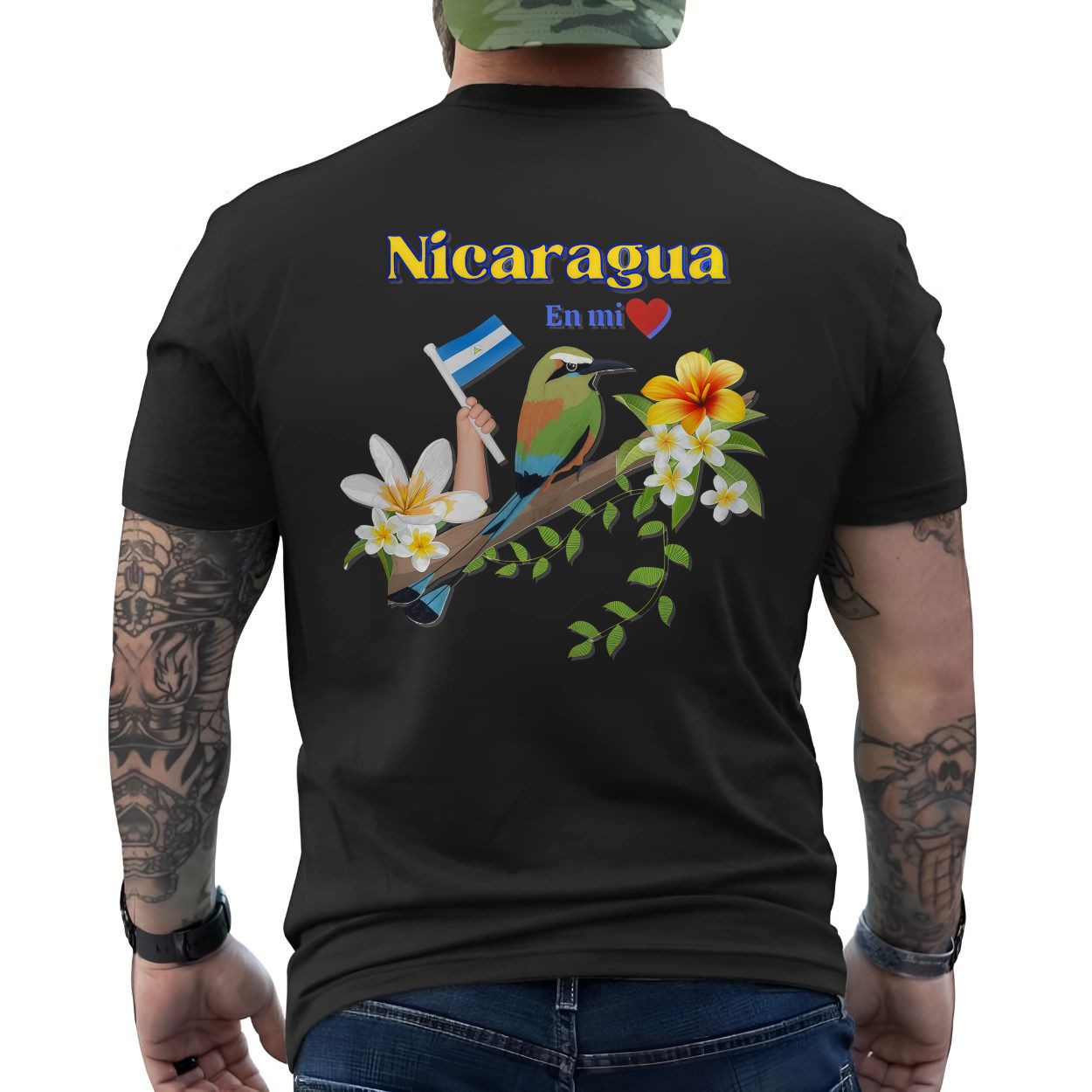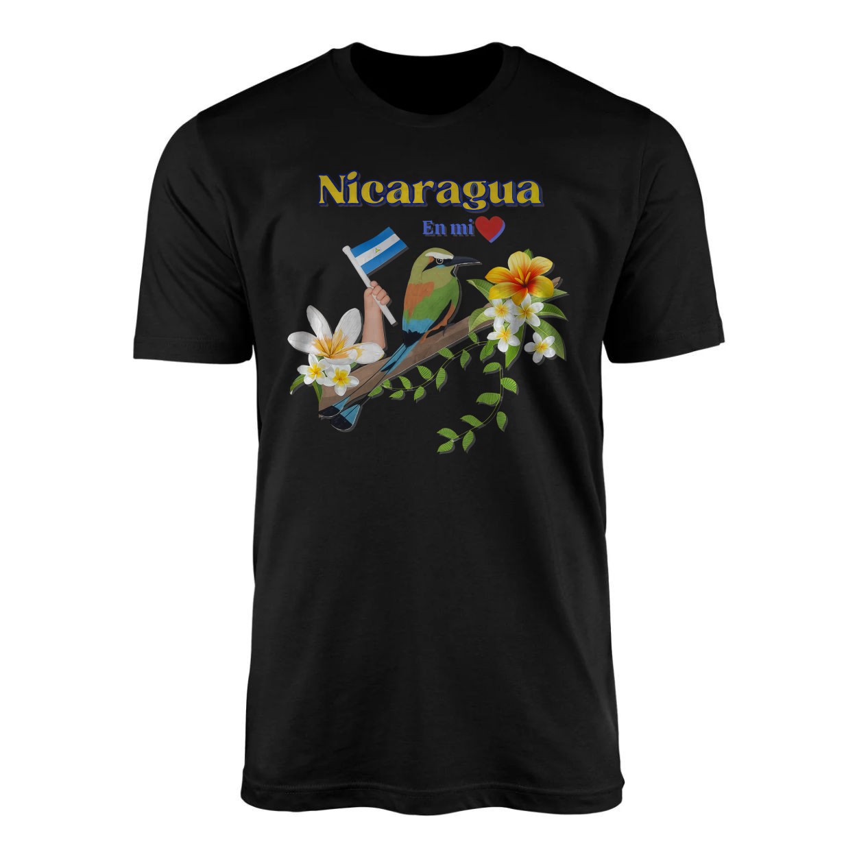 Nicaragua En Mi Corazon – National Pride Motmot Bird and Flag Graphic T-shirt