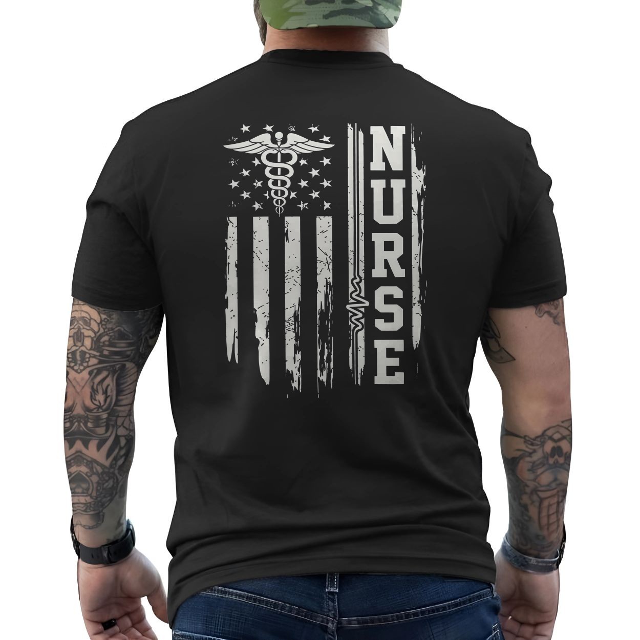 Nurse American Flag Medical Symbol Graphic T-Shirt