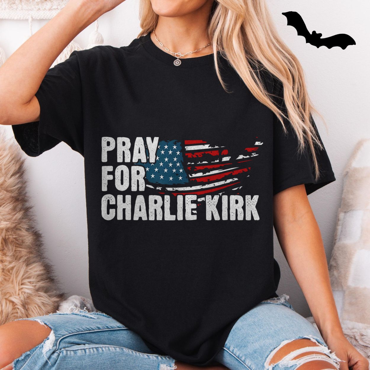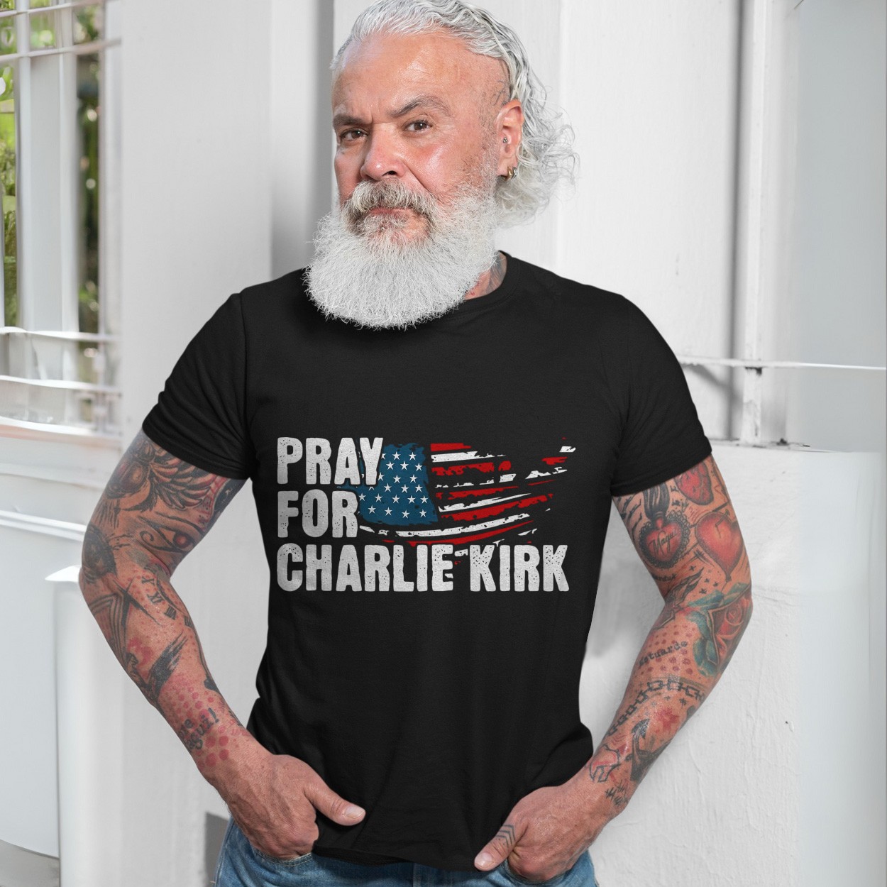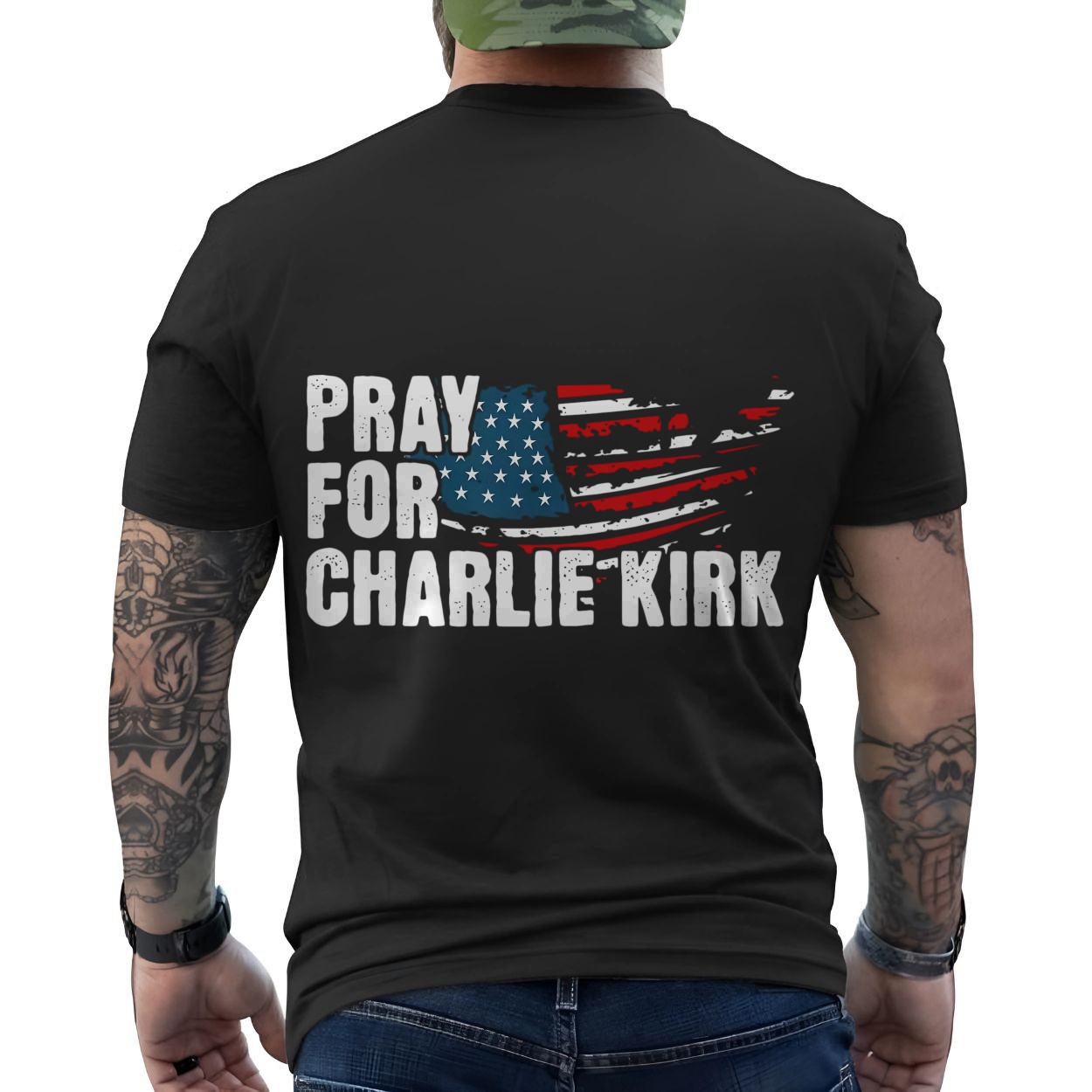 Pray For Charlie Kirk American Flag T-Shirt