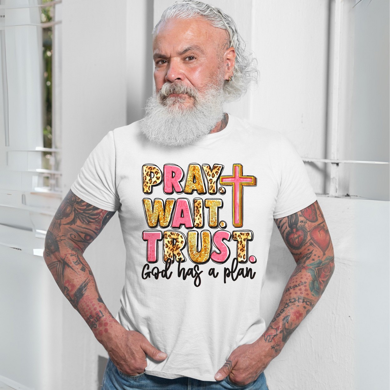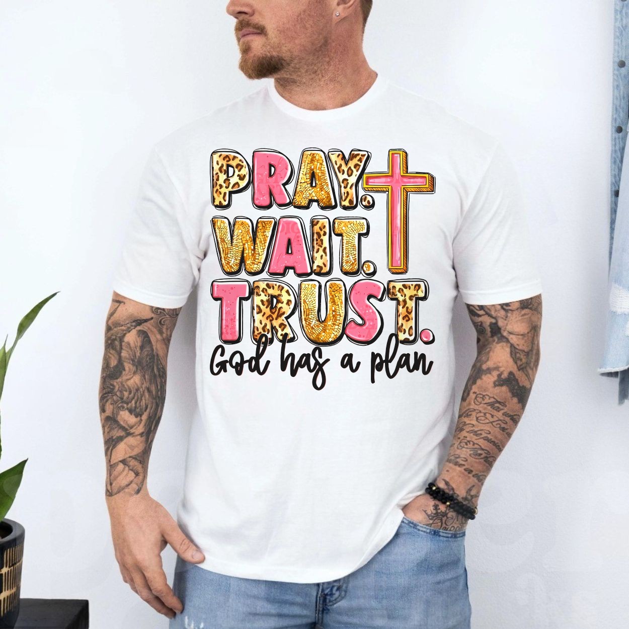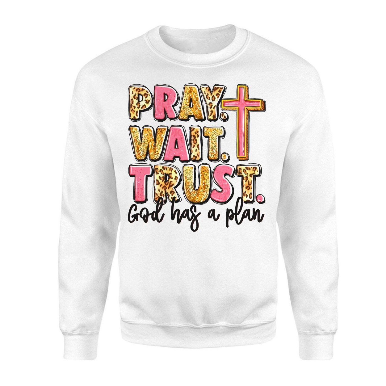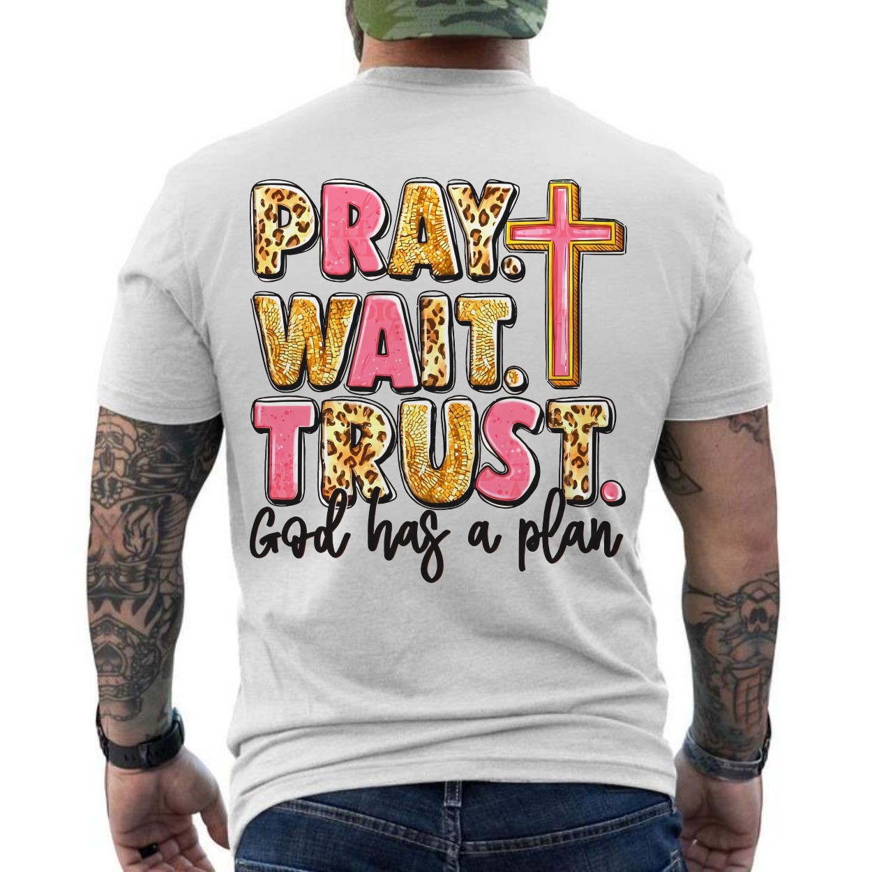 Pray Wait Trust Christian Faith Graphic T-Shirt