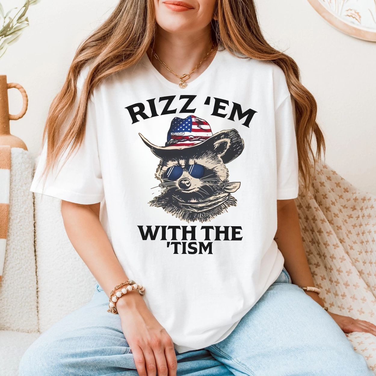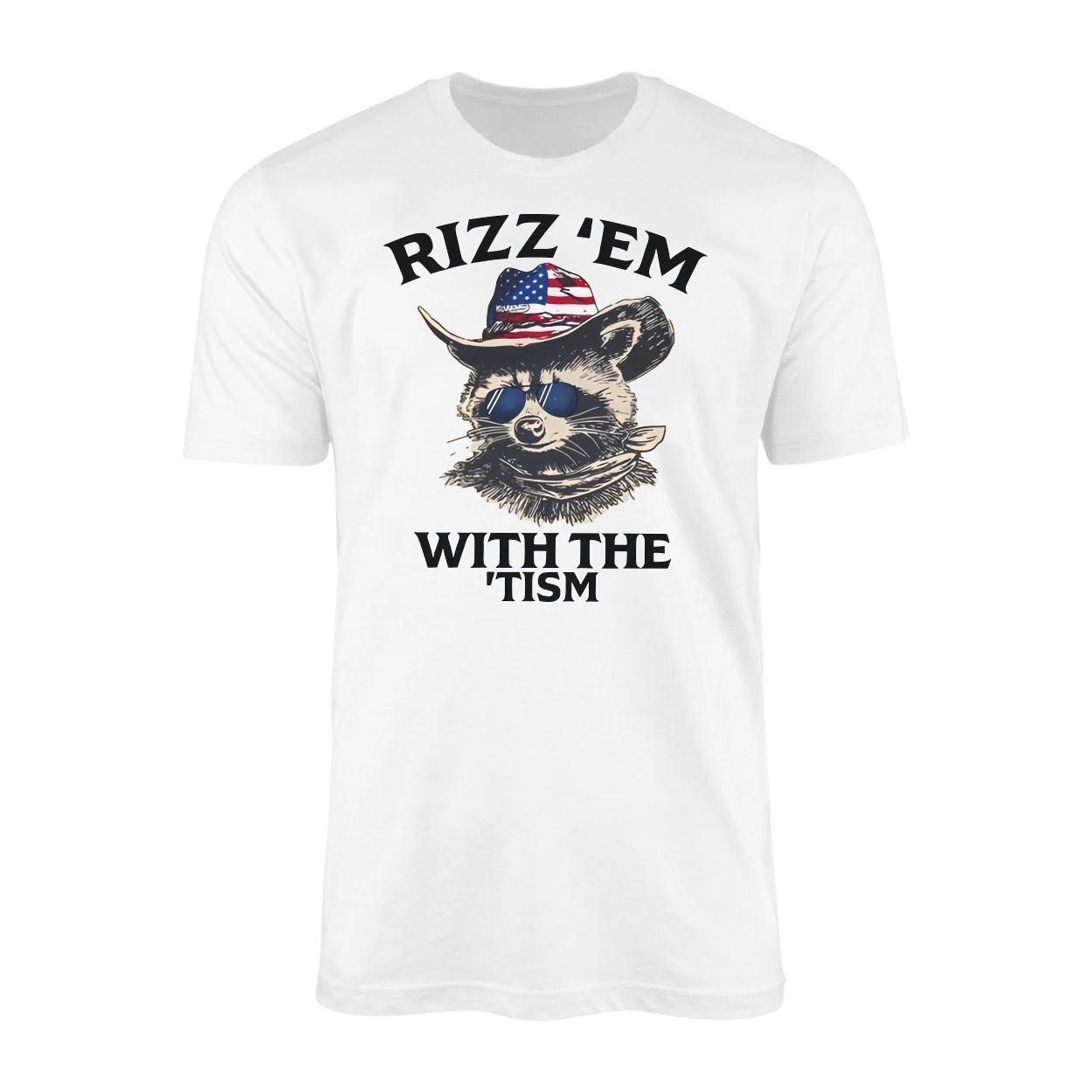 Rizz Em With The Tism T-Shirt Funny Raccoon Meme Autistic Humor