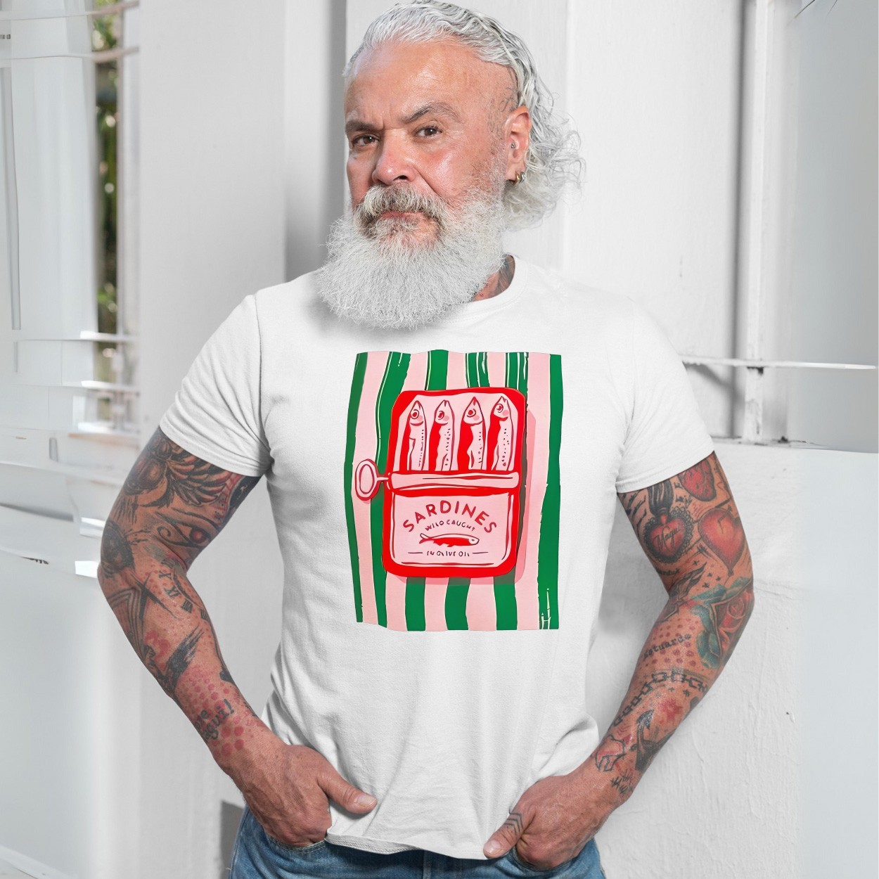 Sardines Wild Caught Retro Can Illustration – Vintage Food Graphic T-shirt