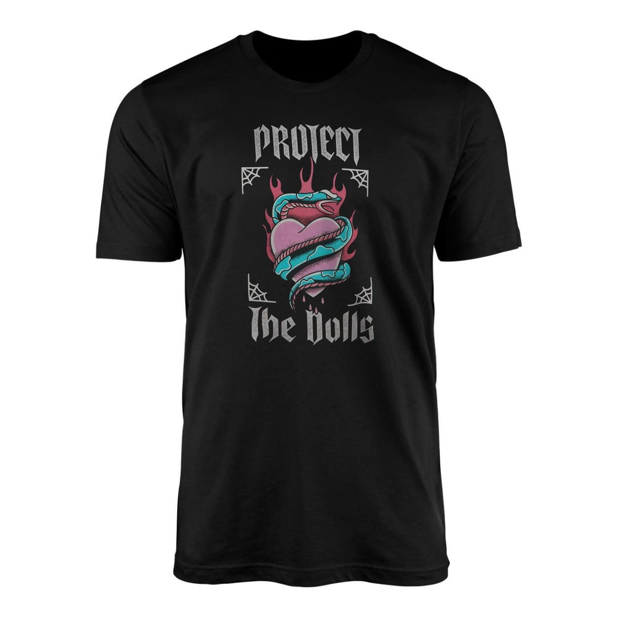 Snake Wrapped Flaming Heart Gothic Graphic T-Shirt