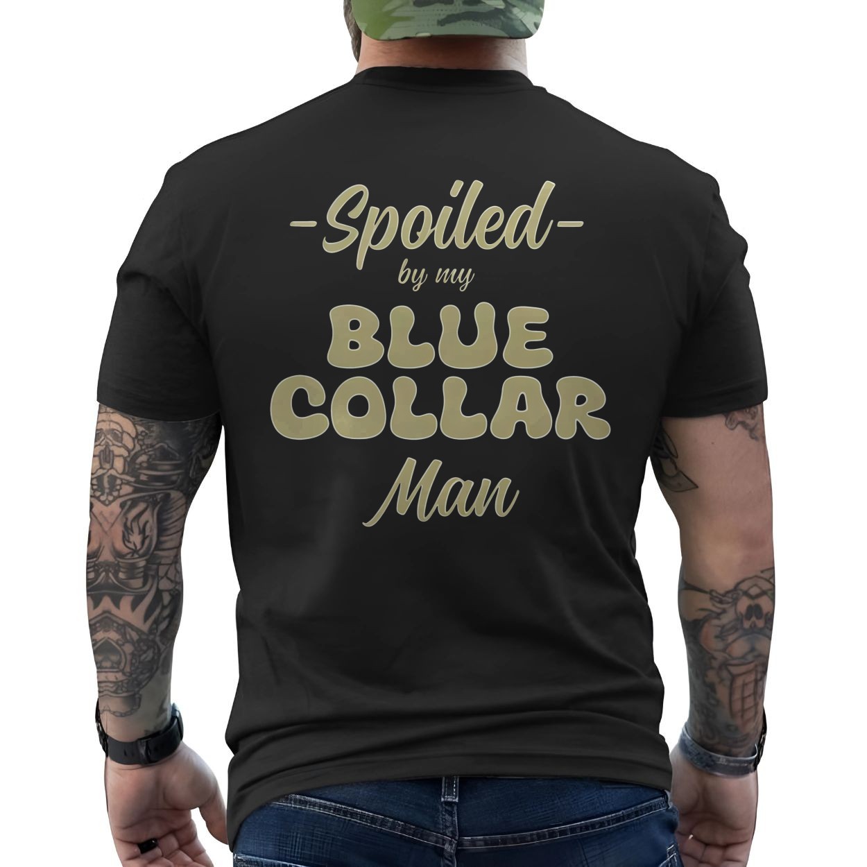 Spoiled by My Blue Collar Man T-Shirt – Retro Graphic Tee, Unisex Black Shirt
